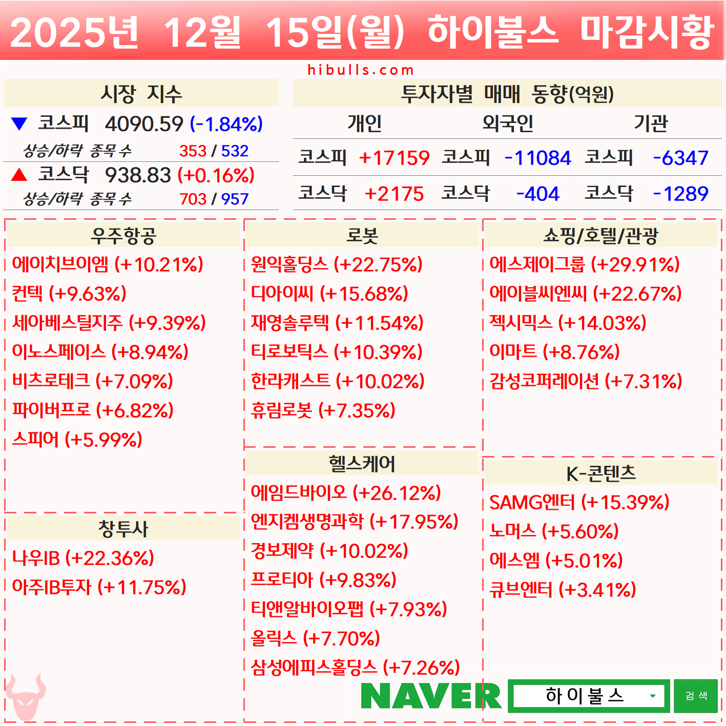 [12.15] 증시 마감시황 및 오늘의 특징주