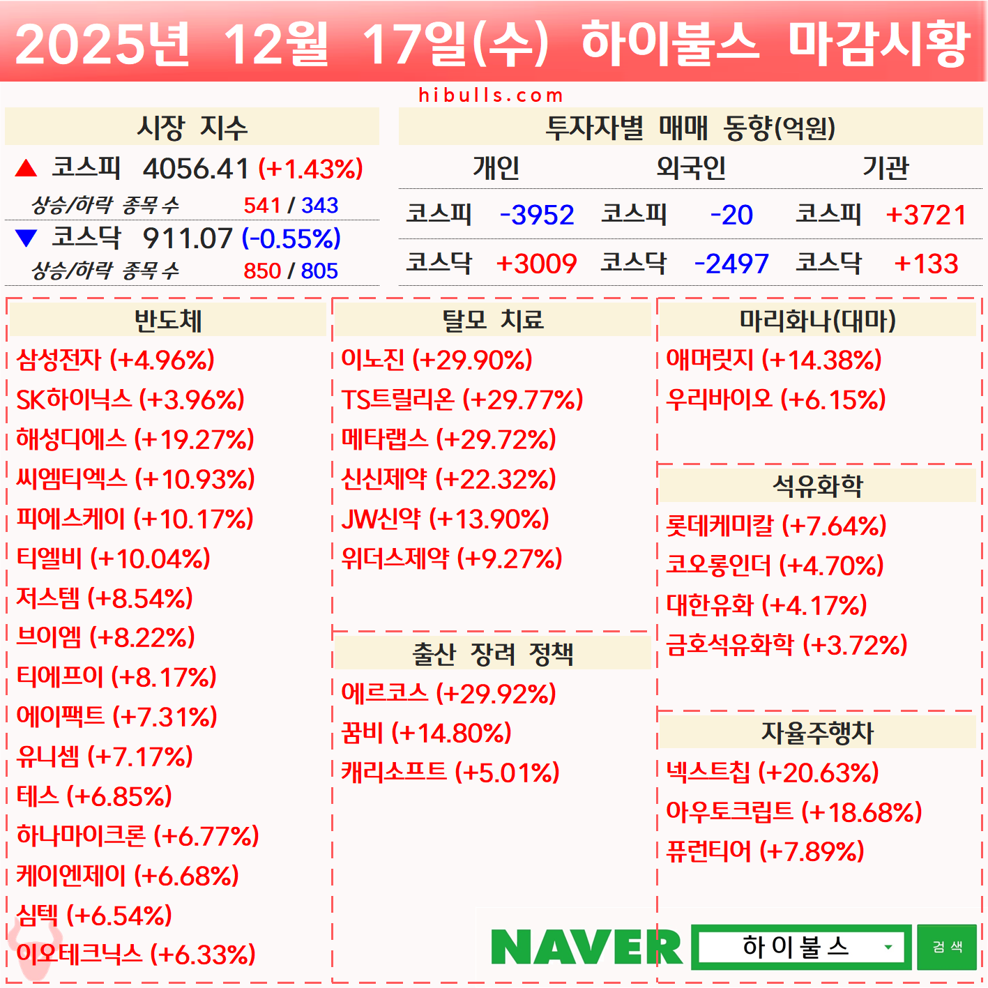 [12.17] 외국인/기관 순매수 상위 종목