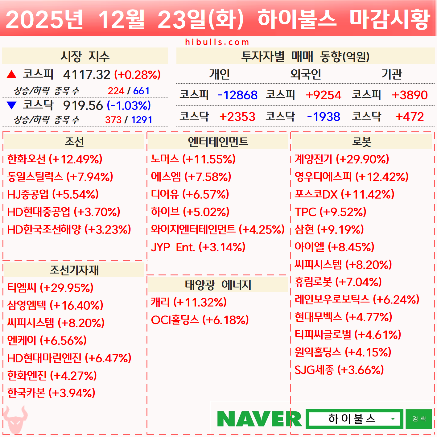 [12.23] 외국인/기관 순매수 상위 종목
