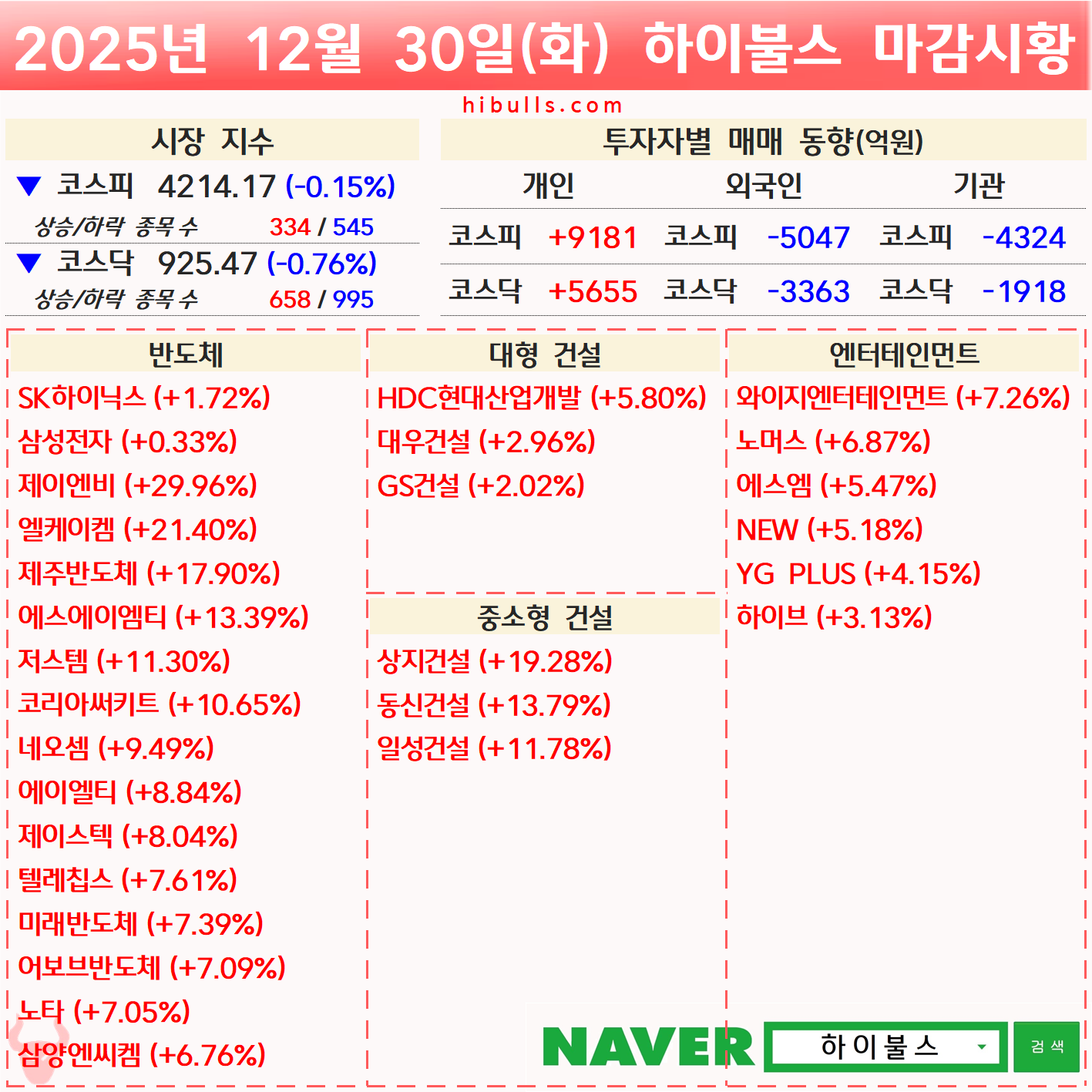 [12.30] 증시 마감시황 및 오늘의 특징주