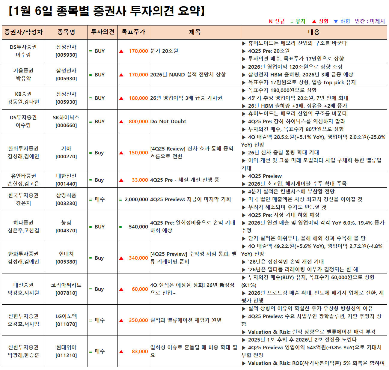 (이미지 내 글자가 잘 보이지 않으면 웹브라우저, 휴대폰 화면을 ‘가로화면’으로 보시거나, 이미지를 클릭하면 확대해서 보실 수 있습니다.) 글 내비게이션 [01.06] 증시 개장 전 시황&오늘의 대응 전략 [01.06] 증시 마감시황 및 오늘의 특징주