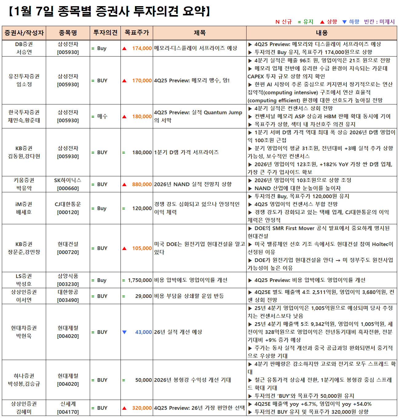 (이미지 내 글자가 잘 보이지 않으면 웹브라우저, 휴대폰 화면을 ‘가로화면’으로 보시거나, 이미지를 클릭하면 확대해서 보실 수 있습니다.) 글 내비게이션 [01.07] 증시 개장 전 시황&오늘의 대응 전략 [01.07] 증시 마감시황 및 오늘의 특징주