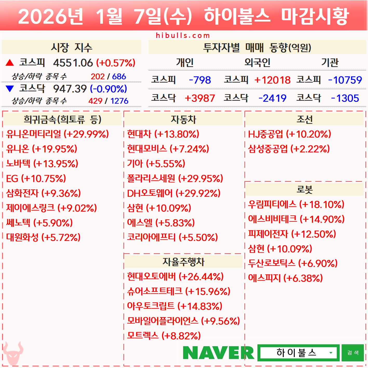 [01.07] 증시 마감시황 및 오늘의 특징주
