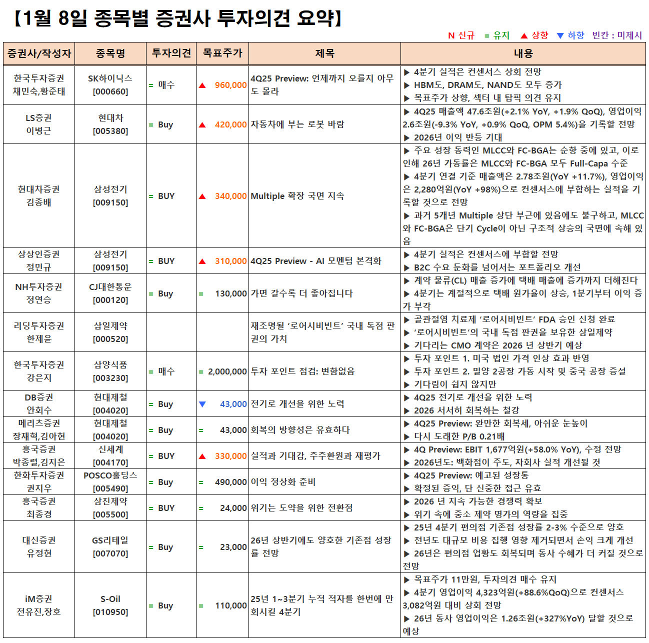 (이미지 내 글자가 잘 보이지 않으면 웹브라우저, 휴대폰 화면을 ‘가로화면’으로 보시거나, 이미지를 클릭하면 확대해서 보실 수 있습니다.) 글 내비게이션 [01.08] 증시 개장 전 시황&오늘의 대응 전략 [01.08] 증시 마감시황 및 오늘의 특징주