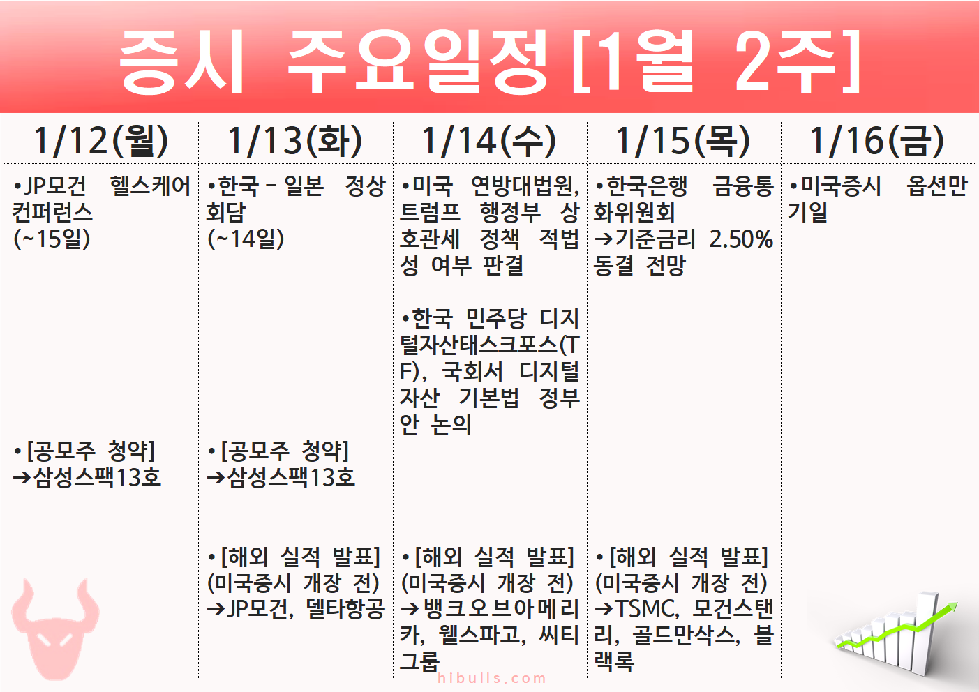 2026년 1월 2주(01.12~01.16) 주간 증시 주요 일정