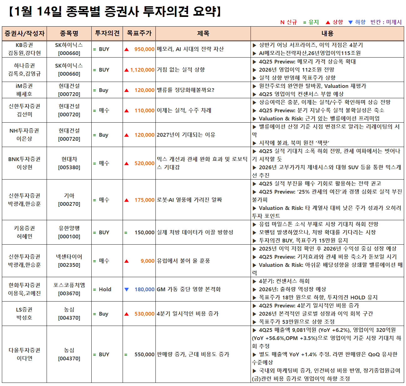 (이미지 내 글자가 잘 보이지 않으면 웹브라우저, 휴대폰 화면을 ‘가로화면’으로 보시거나, 이미지를 클릭하면 확대해서 보실 수 있습니다.) 글 내비게이션 [01.14] 증시 개장 전 시황&오늘의 대응 전략