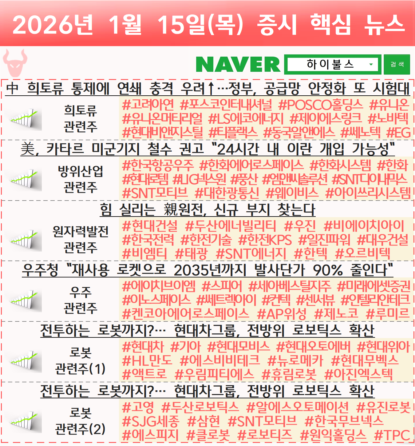 희토류 관련주, 방산 관련주, 방산주, 방위산업 관련주, 원전 관련주, 원자력발전 관련주, 원자력 관련주, 원자력에너지 관련주, 원자력 에너지 관련주, 우주 관련주, 스페이스X 관련주, 우주항공 관련주, 로봇 관련주, 휴머노이드 관련주, 피지컬 AI 관련주, 현대차 로봇 관련주