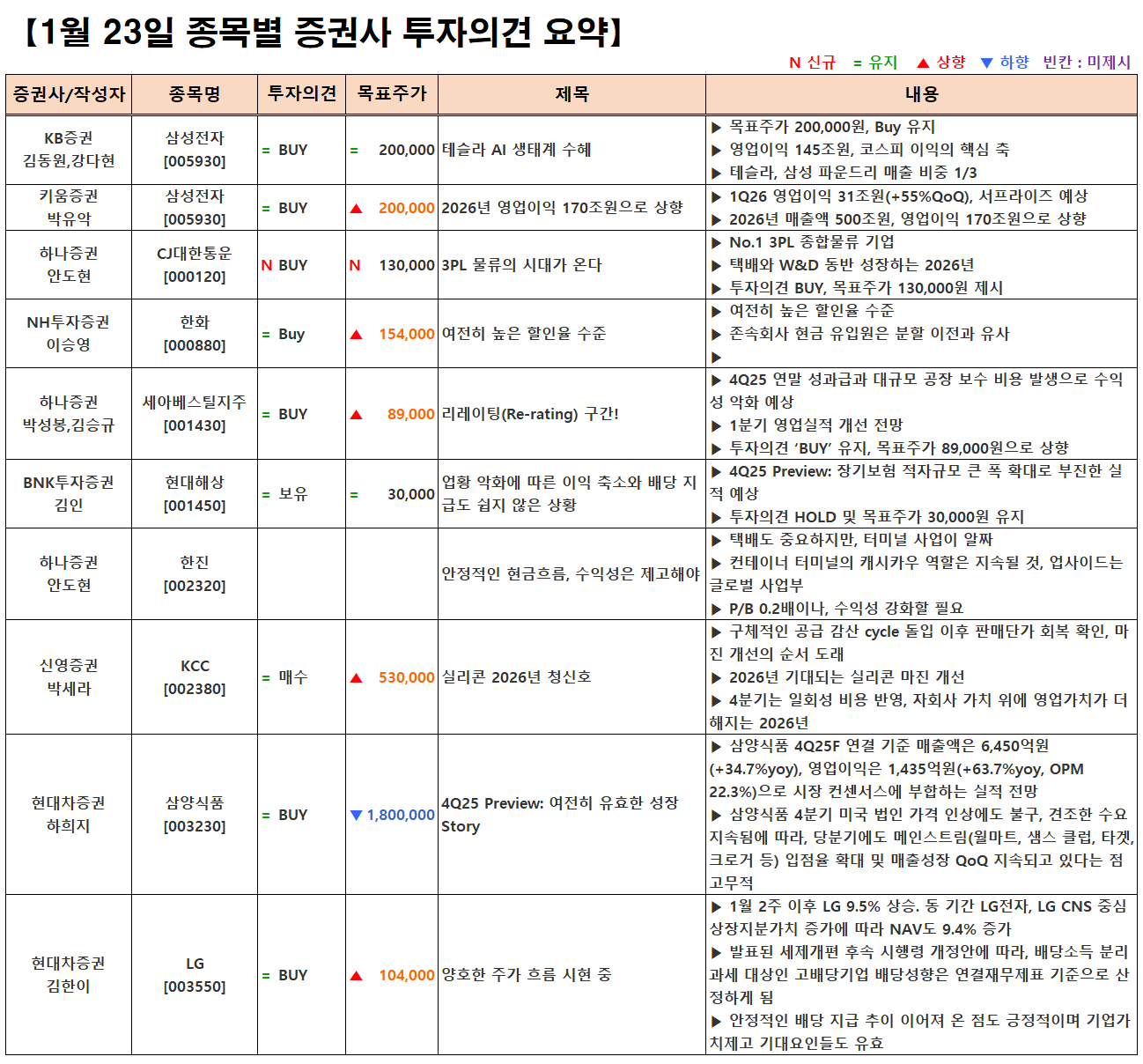 (이미지 내 글자가 잘 보이지 않으면 웹브라우저, 휴대폰 화면을 ‘가로화면’으로 보시거나, 이미지를 클릭하면 확대해서 보실 수 있습니다.) 글 내비게이션 [01.23] 증시 개장 전 시황&오늘의 대응 전략