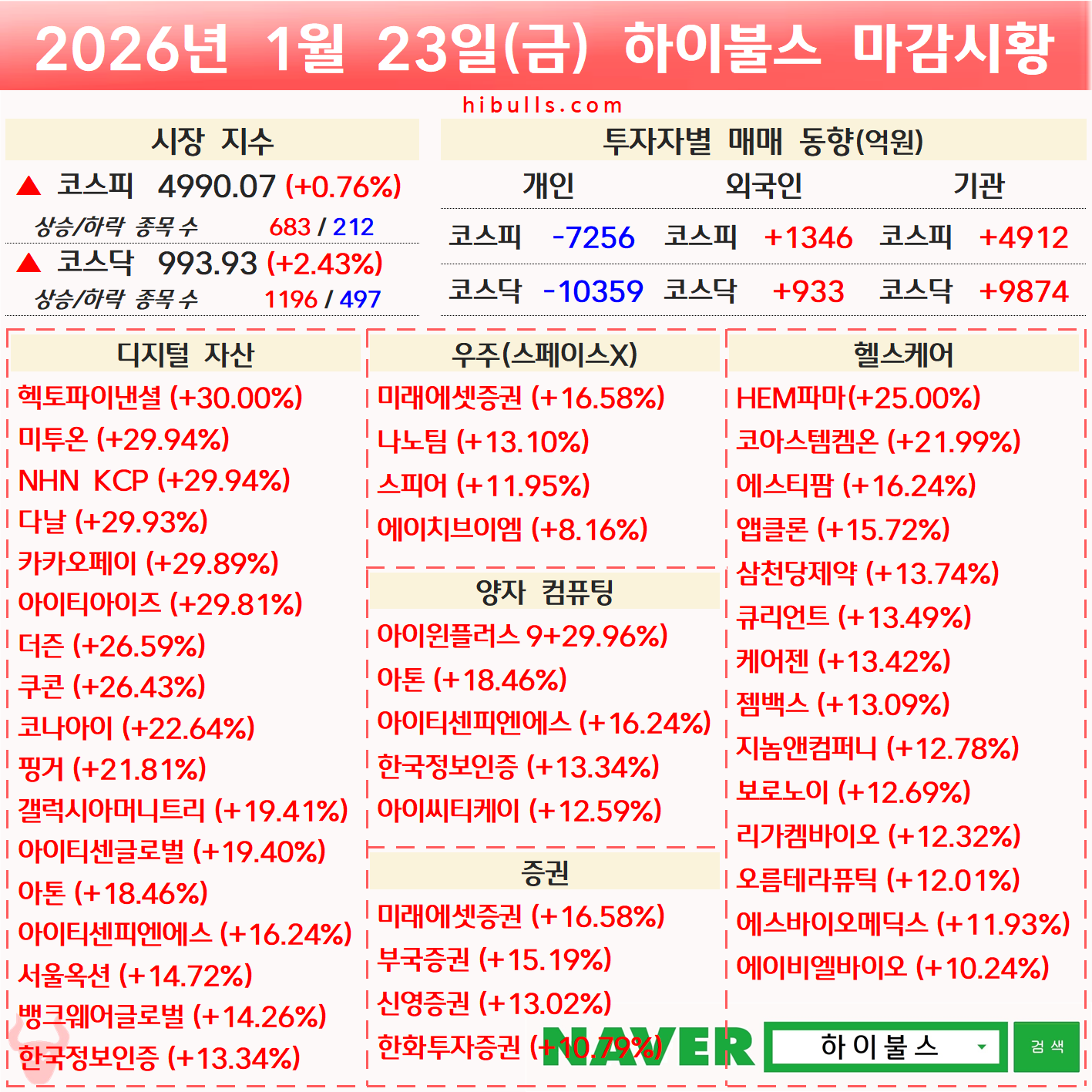 [01.23] 증시 마감시황 및 오늘의 특징주
