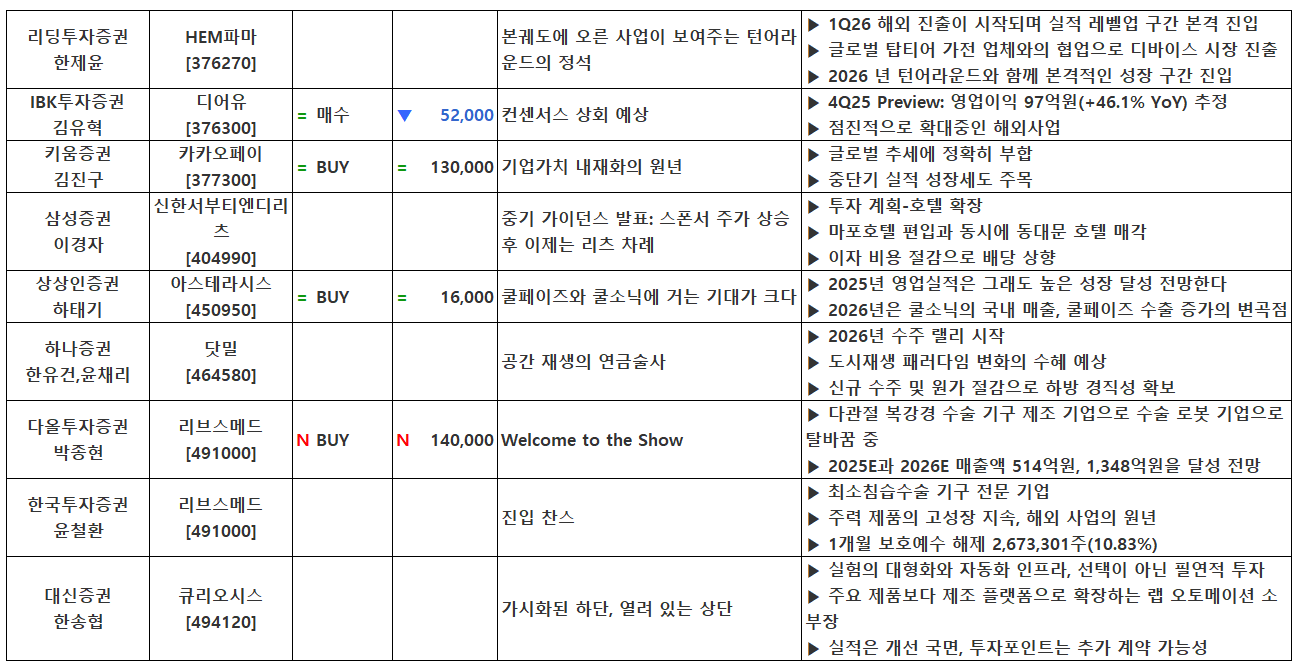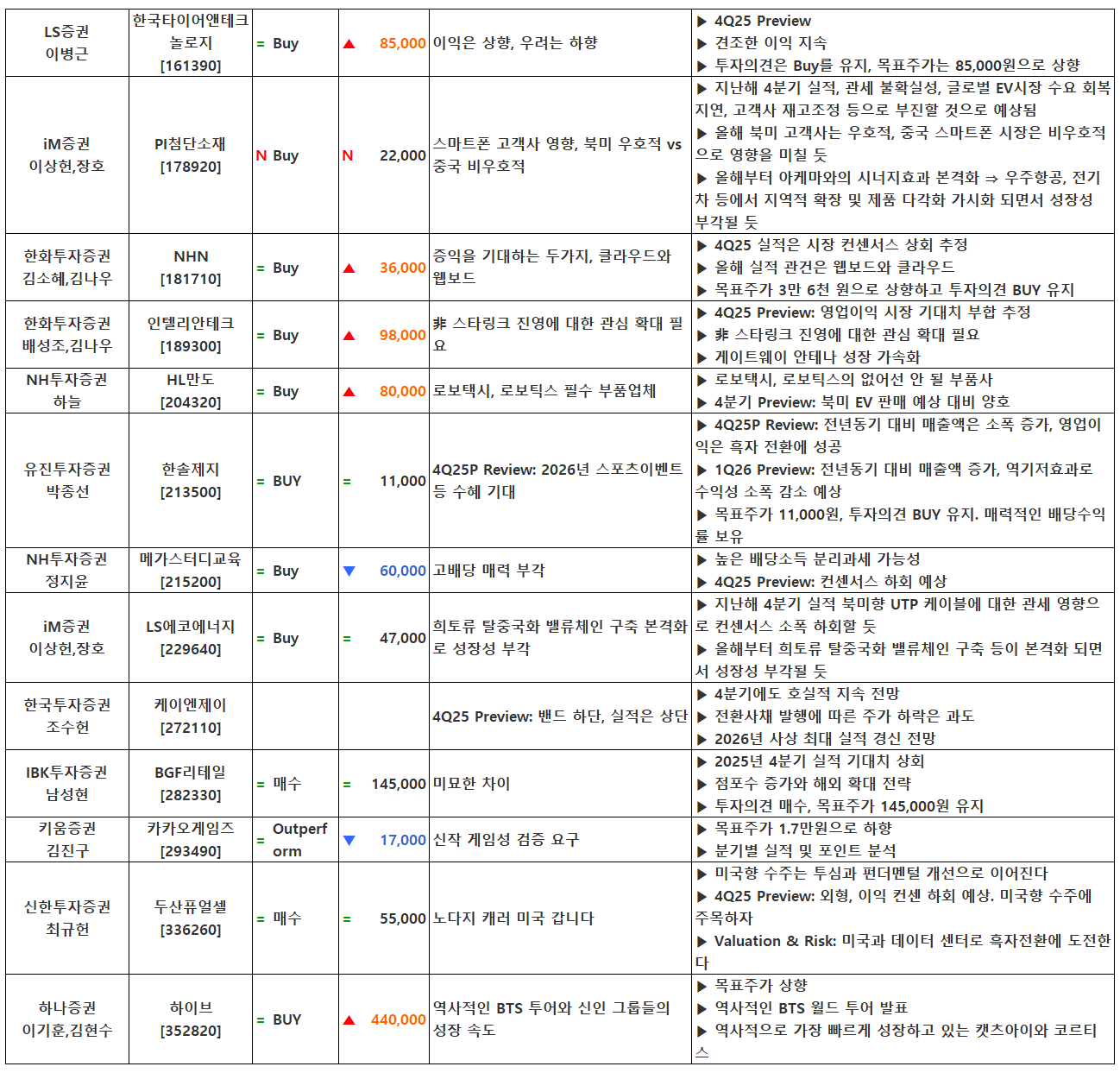 (이미지 내 글자가 잘 보이지 않으면 웹브라우저, 휴대폰 화면을 ‘가로화면’으로 보시거나, 이미지를 클릭하면 확대해서 보실 수 있습니다.) 글 내비게이션 2025년 4분기 실적 특징주(1월 19~23일 발표)