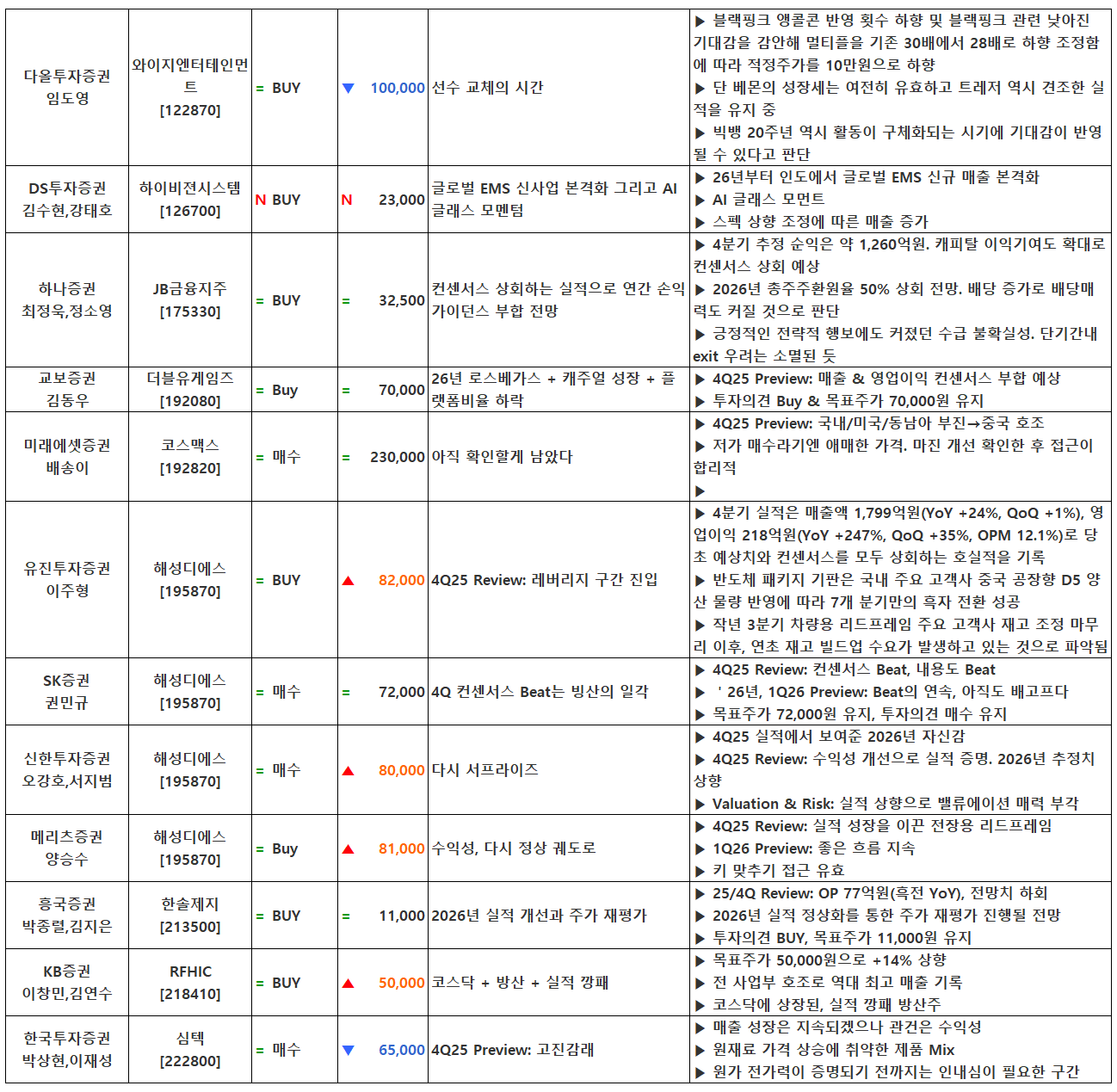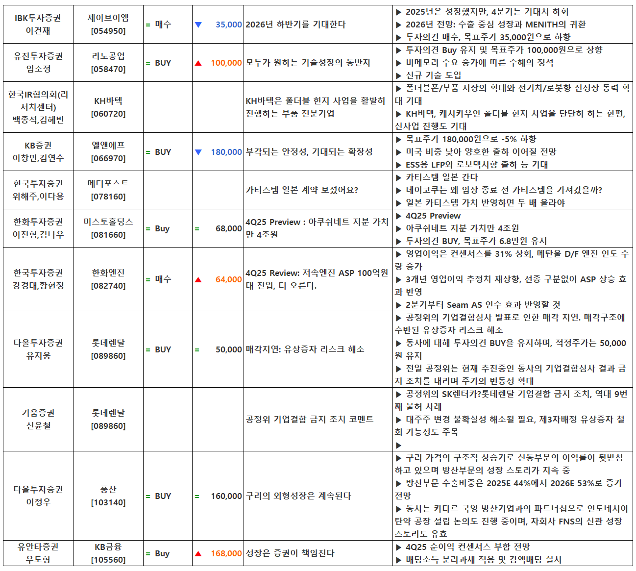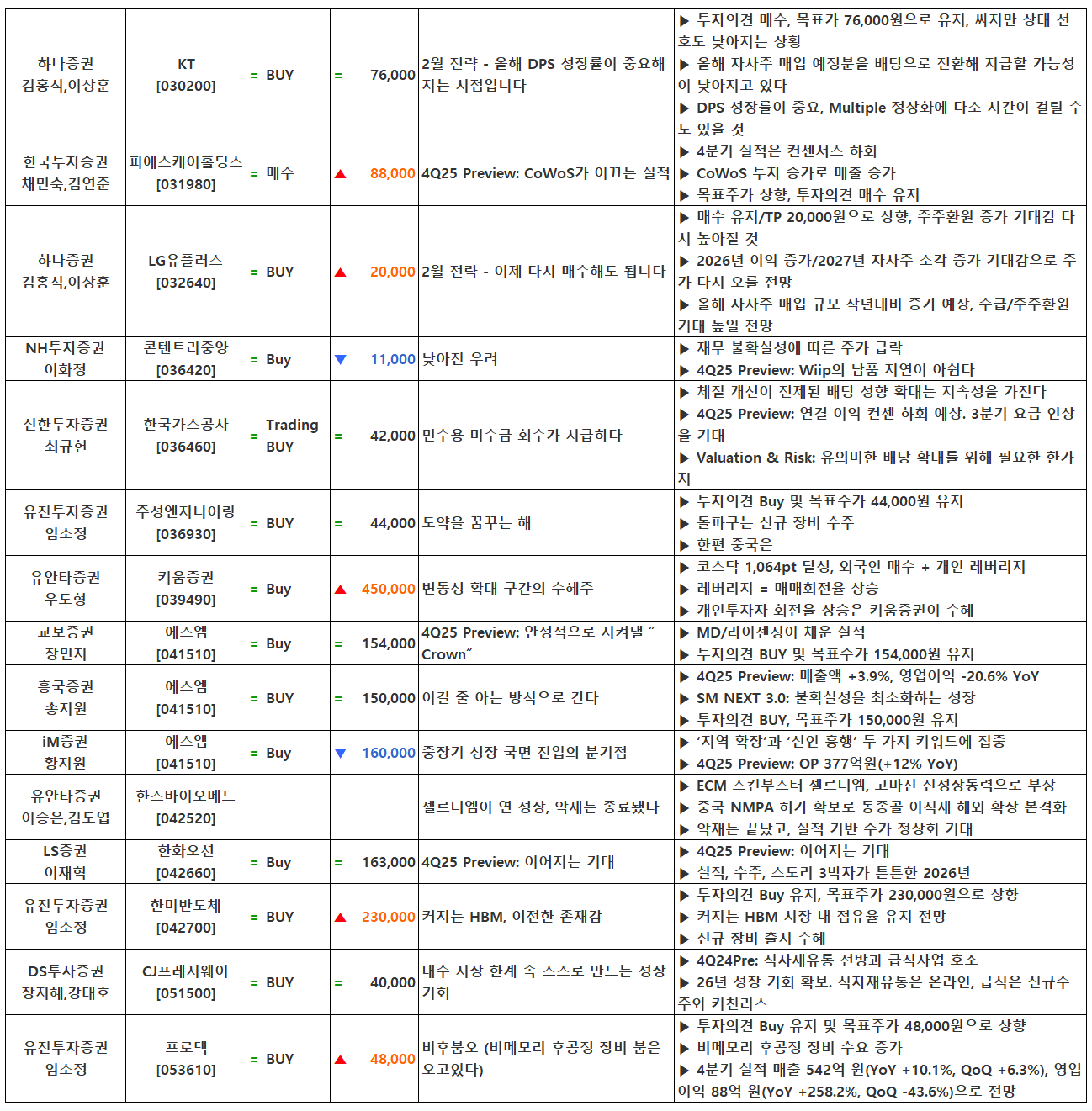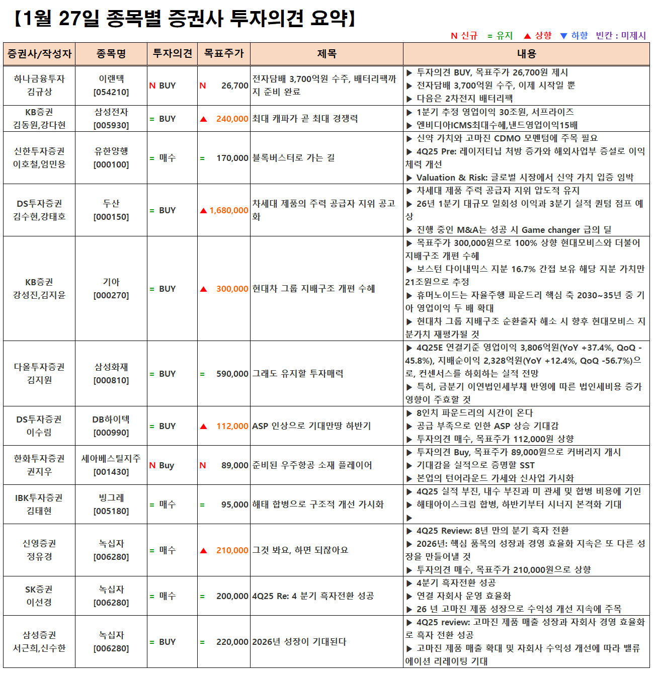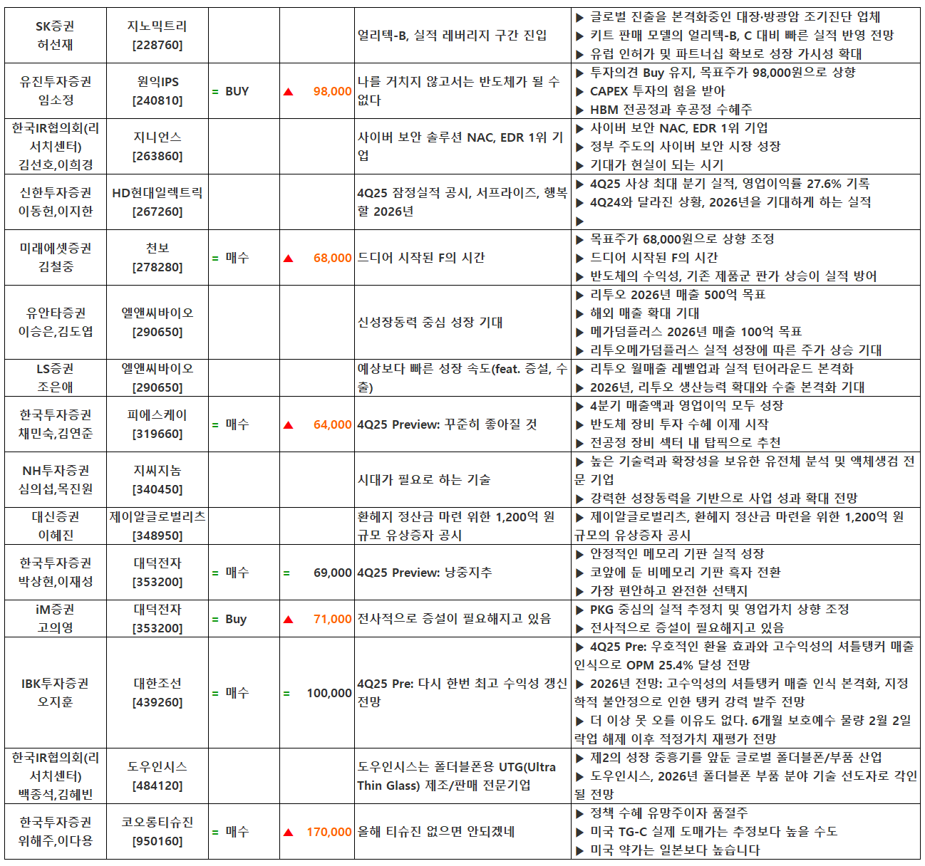 (이미지 내 글자가 잘 보이지 않으면 웹브라우저, 휴대폰 화면을 ‘가로화면’으로 보시거나, 이미지를 클릭하면 확대해서 보실 수 있습니다.) 글 내비게이션 2025년 4분기 실적 특징주(1월 26일 발표) [01.27] 증시 마감시황 및 오늘의 특징주