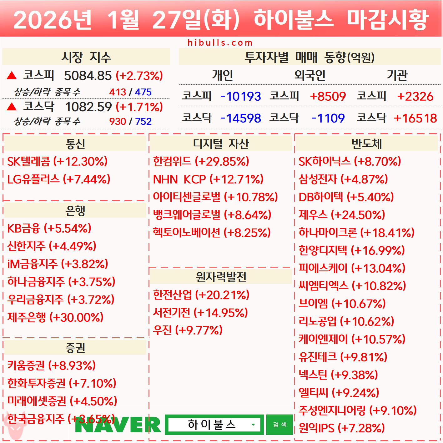 [01.27] 증시 마감시황 및 오늘의 특징주