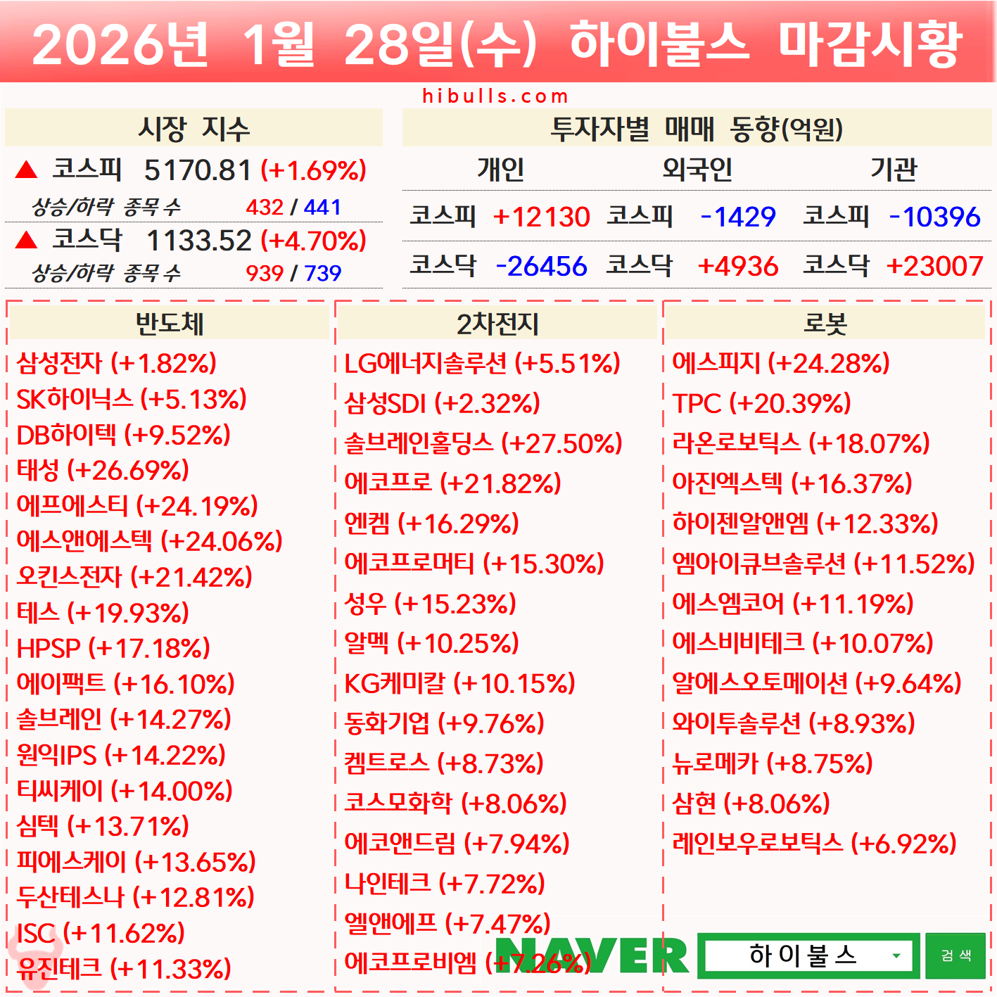[01.28] 외국인/기관 순매수 상위 종목