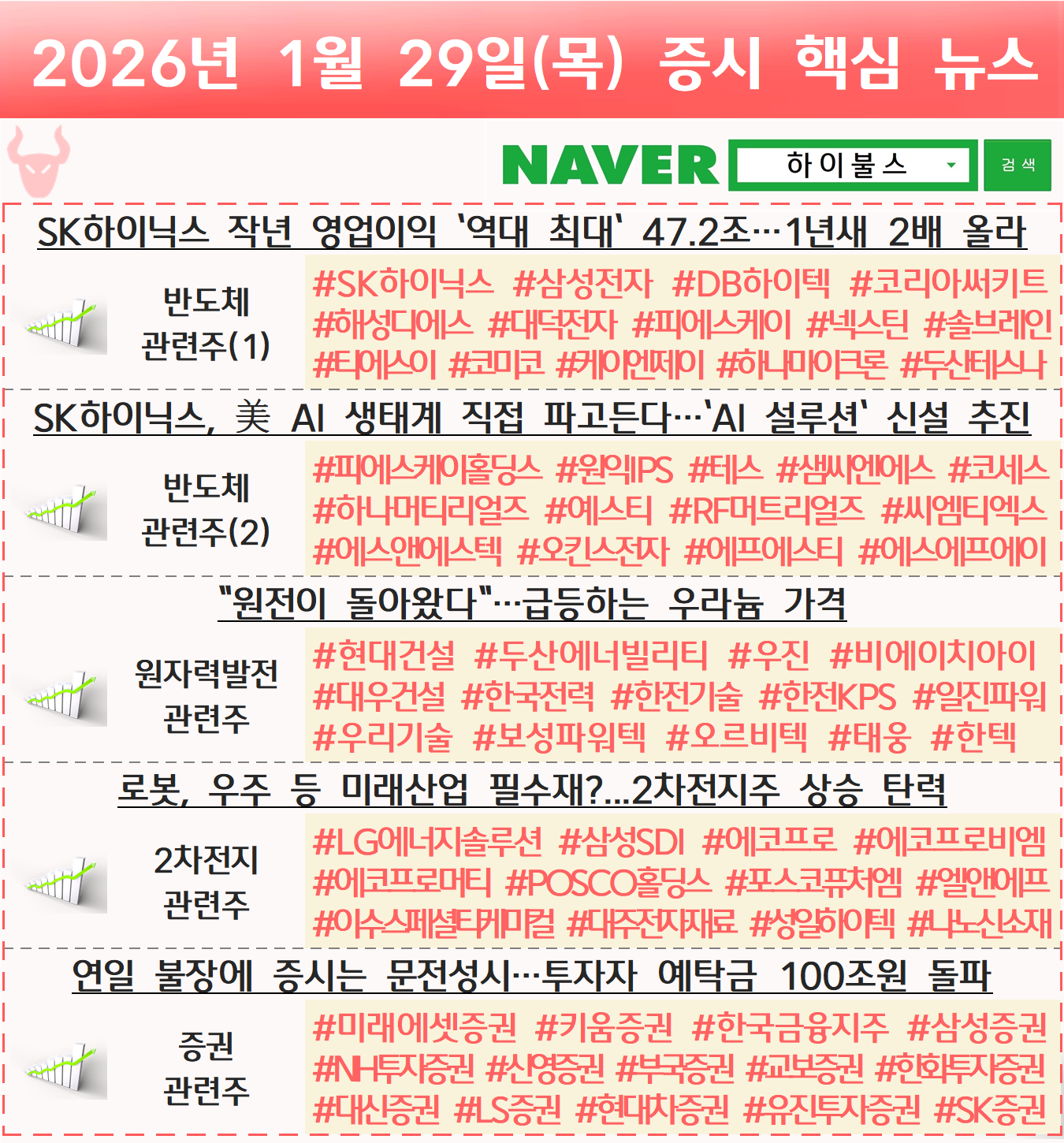 반도체 관련주, 원전 관련주, 원자력발전 관련주, 원자력 관련주, 원자력에너지 관련주, 2차전지 관련주, 이차전지 관련주, 증권 관련주, 증권주 글 내비게이션 [01.28] 증시 개장 전 핵심뉴스 하이불스 Pick