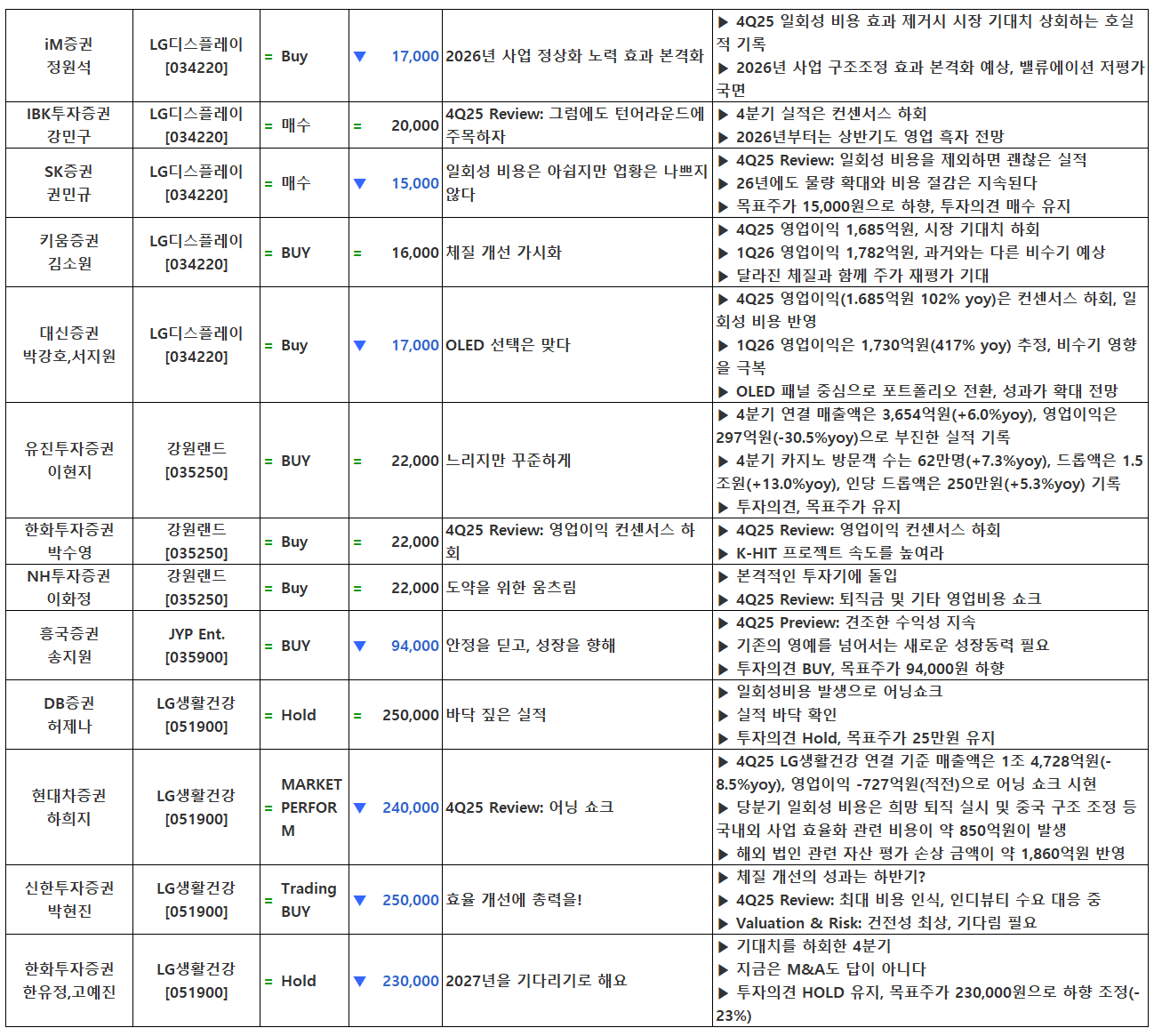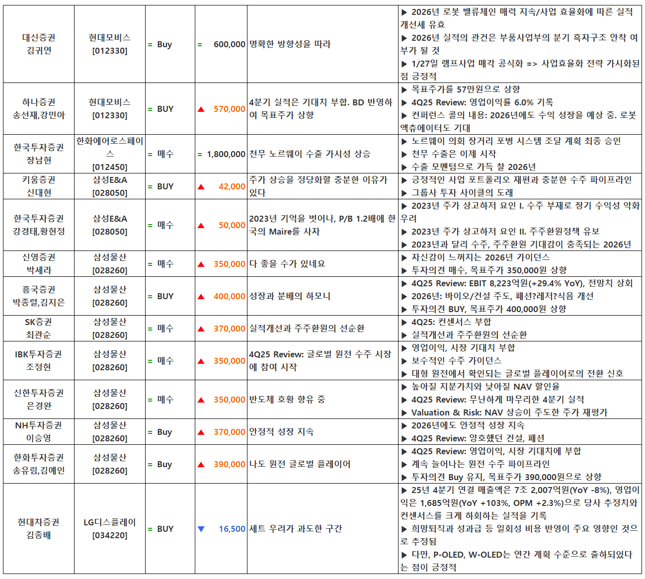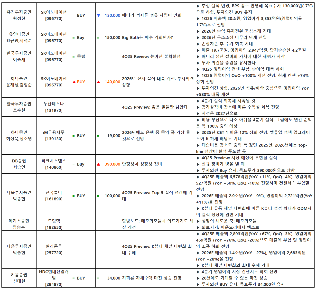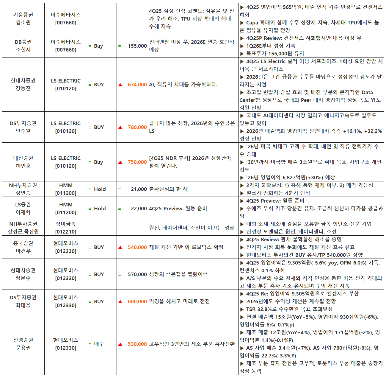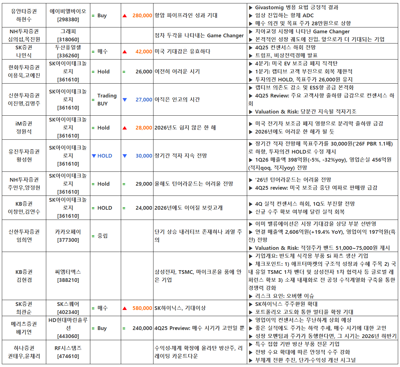 (이미지 내 글자가 잘 보이지 않으면 웹브라우저, 휴대폰 화면을 ‘가로화면’으로 보시거나, 이미지를 클릭하면 확대해서 보실 수 있습니다.) 글 내비게이션 2025년 4분기 실적 특징주(1월 28일 발표)