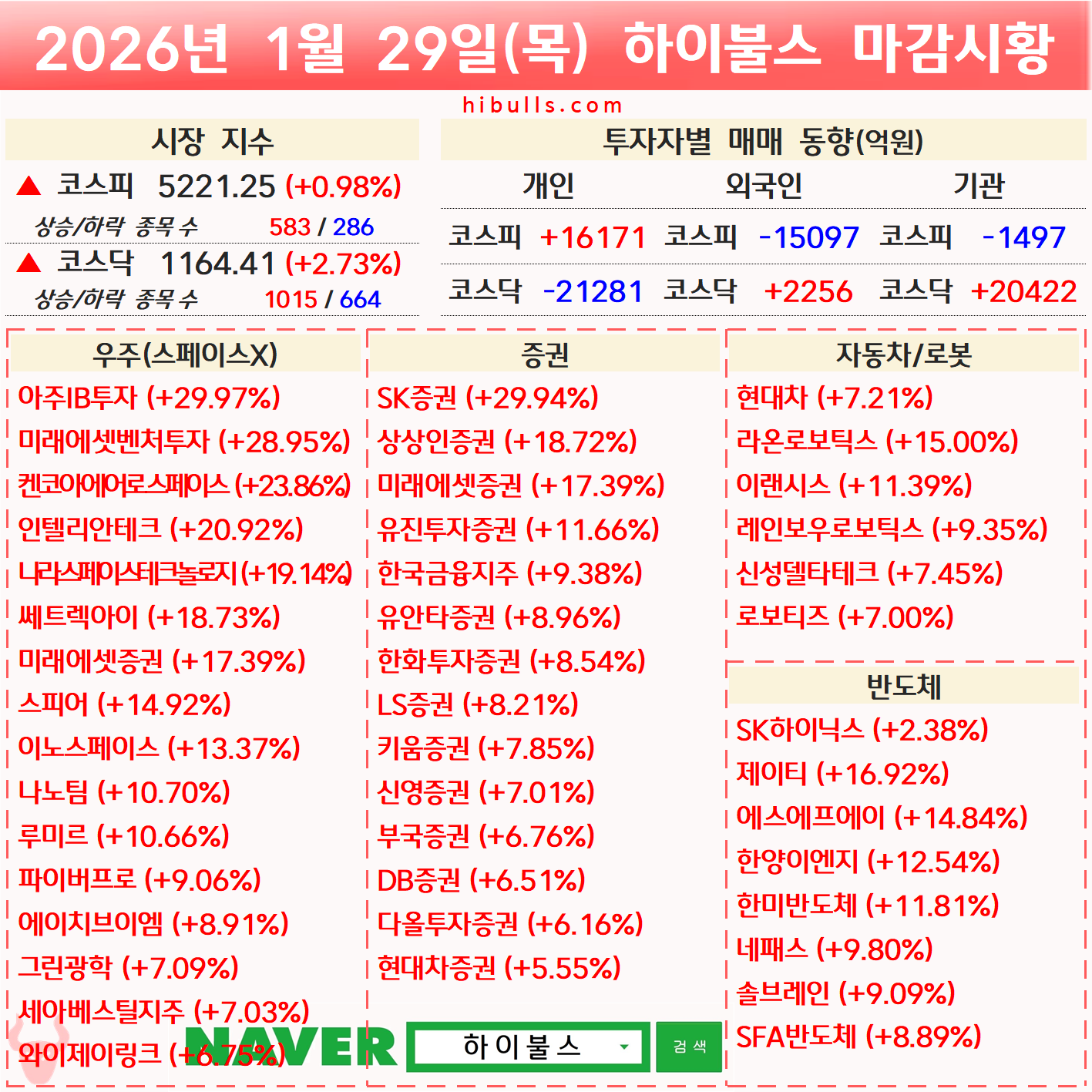 [01.29] 증시 마감시황 및 오늘의 특징주