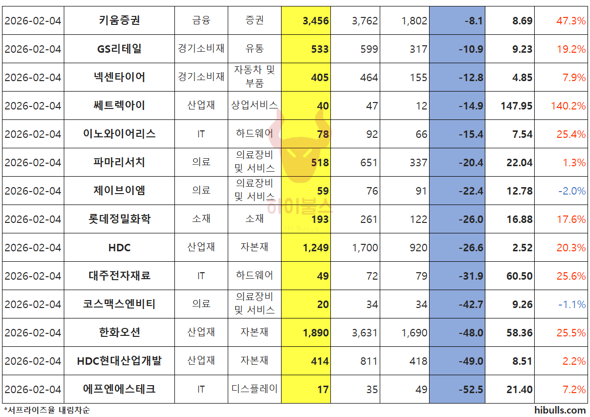 실적 하회 : HD현대마린솔루션, 삼양엔씨켐, 키움증권, GS리테일, 넥센타이어