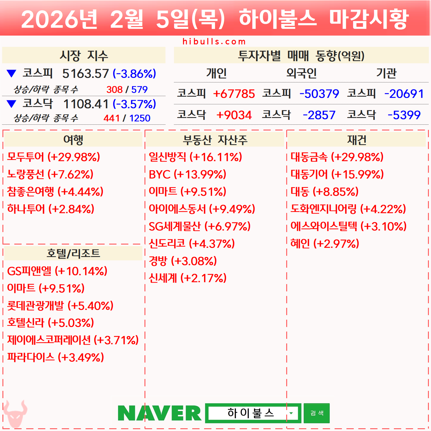 [02.05] 외국인/기관 순매수 상위 종목