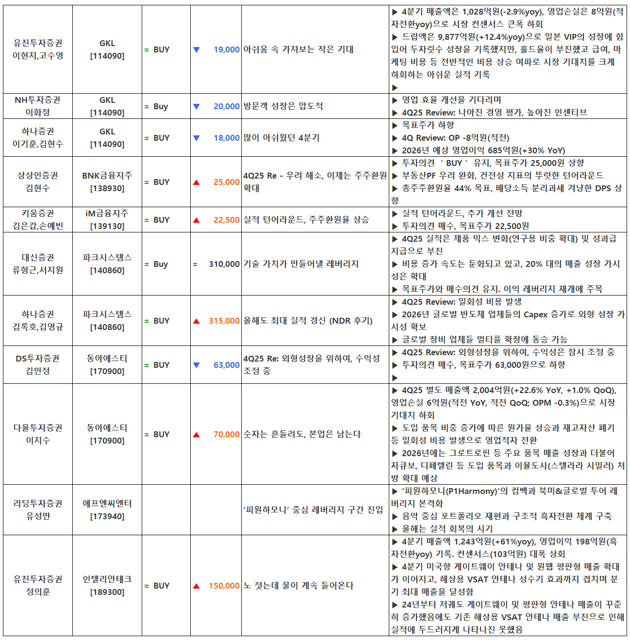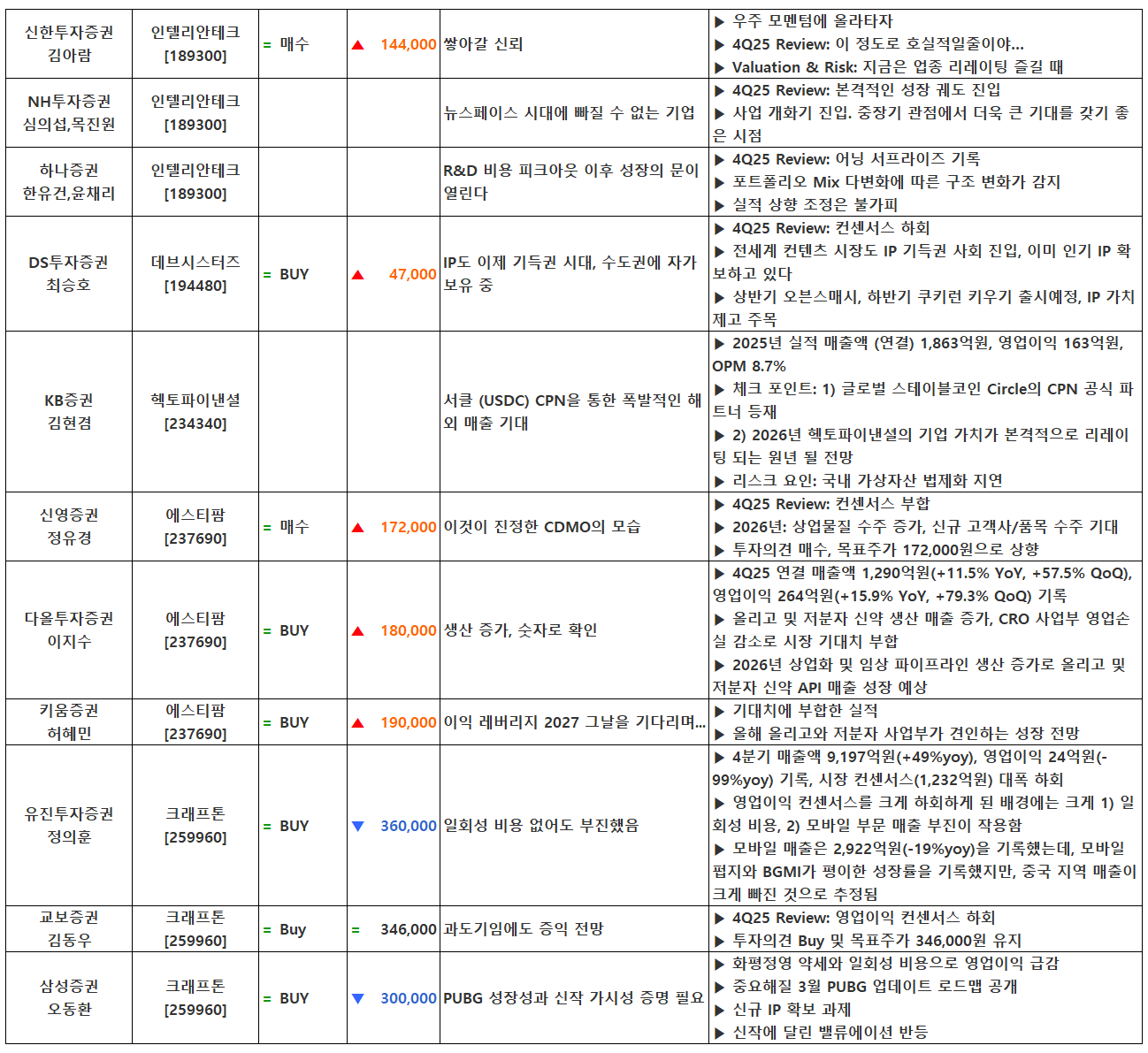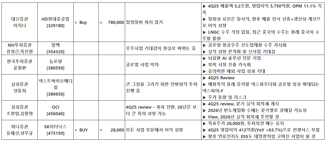 (이미지 내 글자가 잘 보이지 않으면 웹브라우저, 휴대폰 화면을 ‘가로화면’으로 보시거나, 이미지를 클릭하면 확대해서 보실 수 있습니다.) 글 내비게이션 2025년 4분기 실적 특징주(2월 9일 발표)