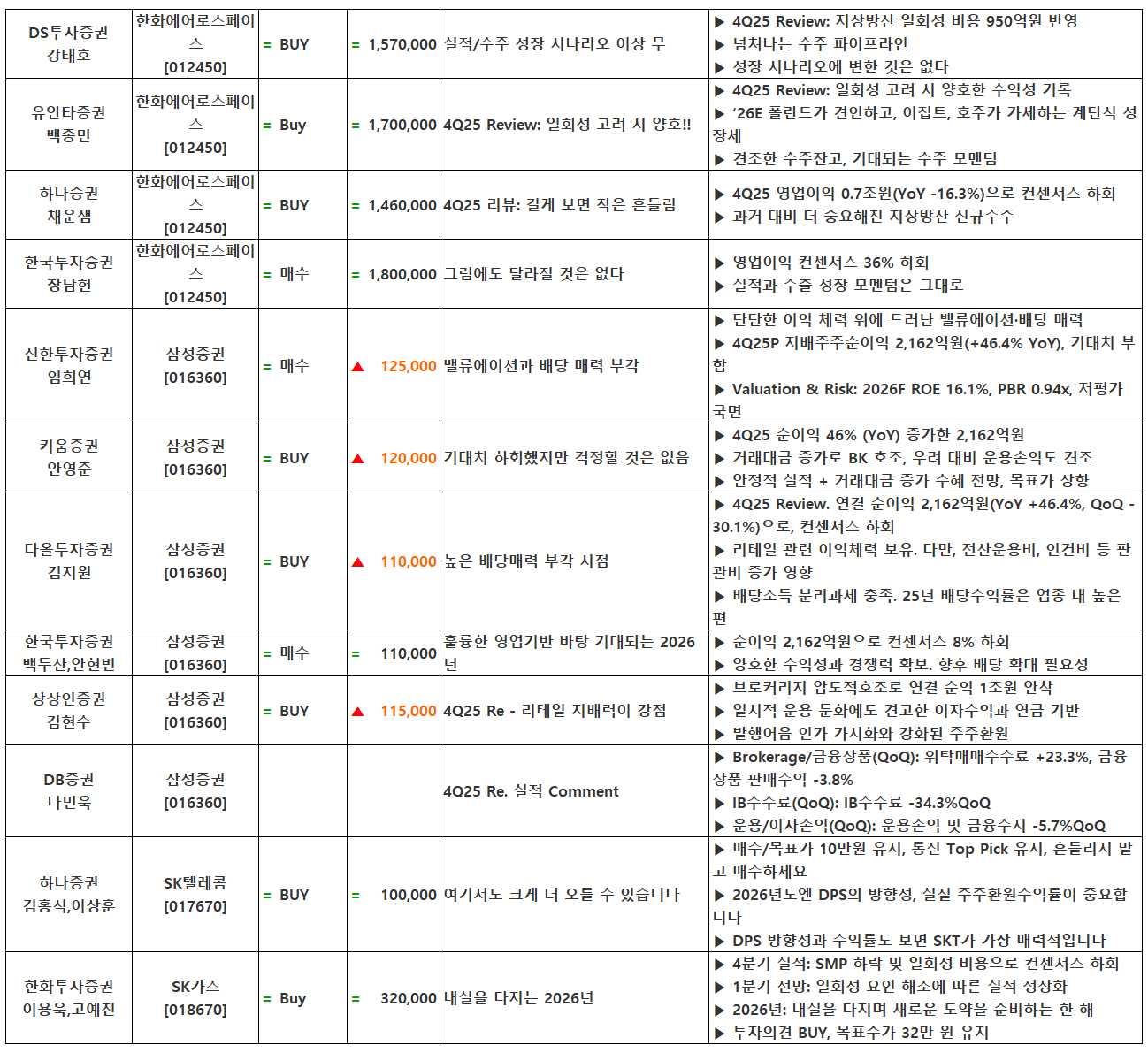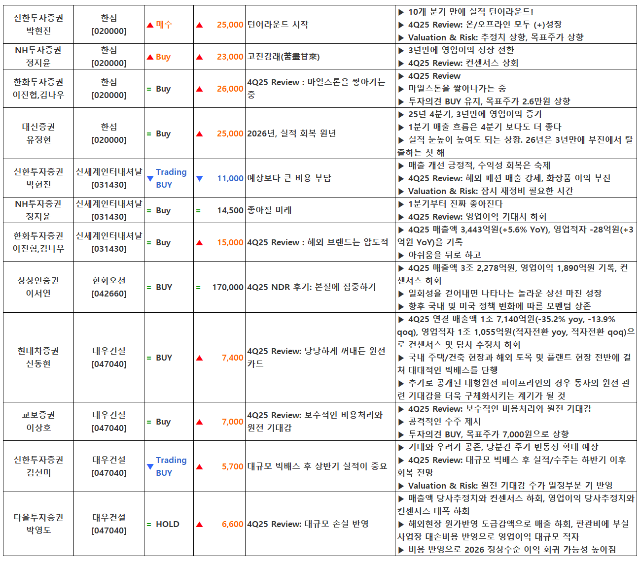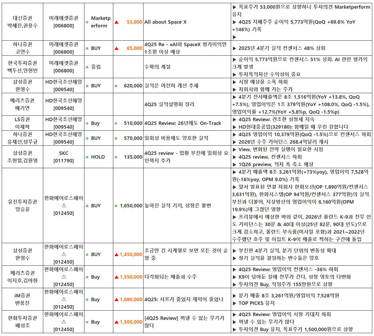 (이미지 내 글자가 잘 보이지 않으면 웹브라우저, 휴대폰 화면을 ‘가로화면’으로 보시거나, 이미지를 클릭하면 확대해서 보실 수 있습니다.) 글 내비게이션 2025년 4분기 실적 특징주(2월 9일 발표)