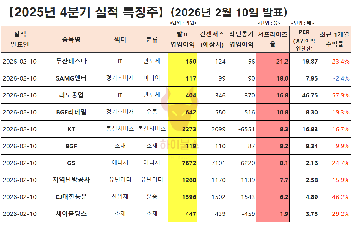실적 서프라이즈 : 두산테스나, SAMG엔터, 리노공업