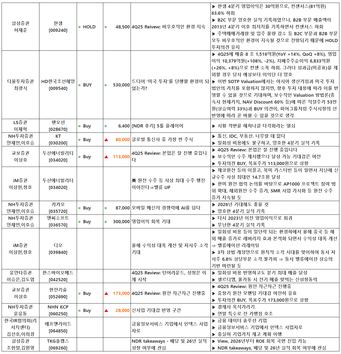 (이미지 내 글자가 잘 보이지 않으면 웹브라우저, 휴대폰 화면을 ‘가로화면’으로 보시거나, 이미지를 클릭하면 확대해서 보실 수 있습니다.) 글 내비게이션 2025년 4분기 실적 특징주(2월 13일 발표)
