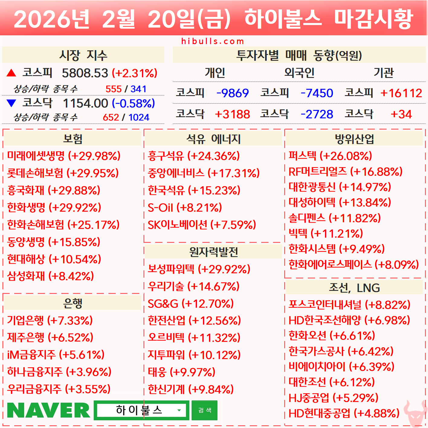 [02.20] 증시 마감시황 및 오늘의 특징주