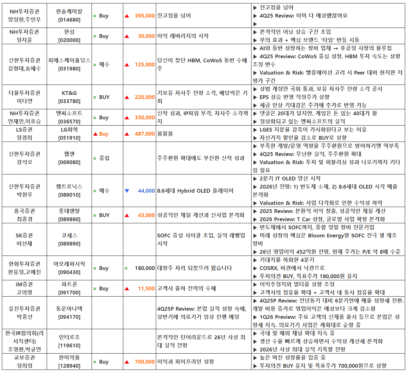 (이미지 내 글자가 잘 보이지 않으면 웹브라우저, 휴대폰 화면을 ‘가로화면’으로 보시거나, 이미지를 클릭하면 확대해서 보실 수 있습니다.) 글 내비게이션 2025년 4분기 실적 특징주(2월 25일 발표)