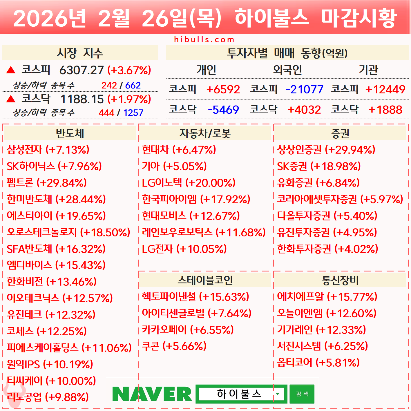 [02.26] 증시 마감시황 및 오늘의 특징주