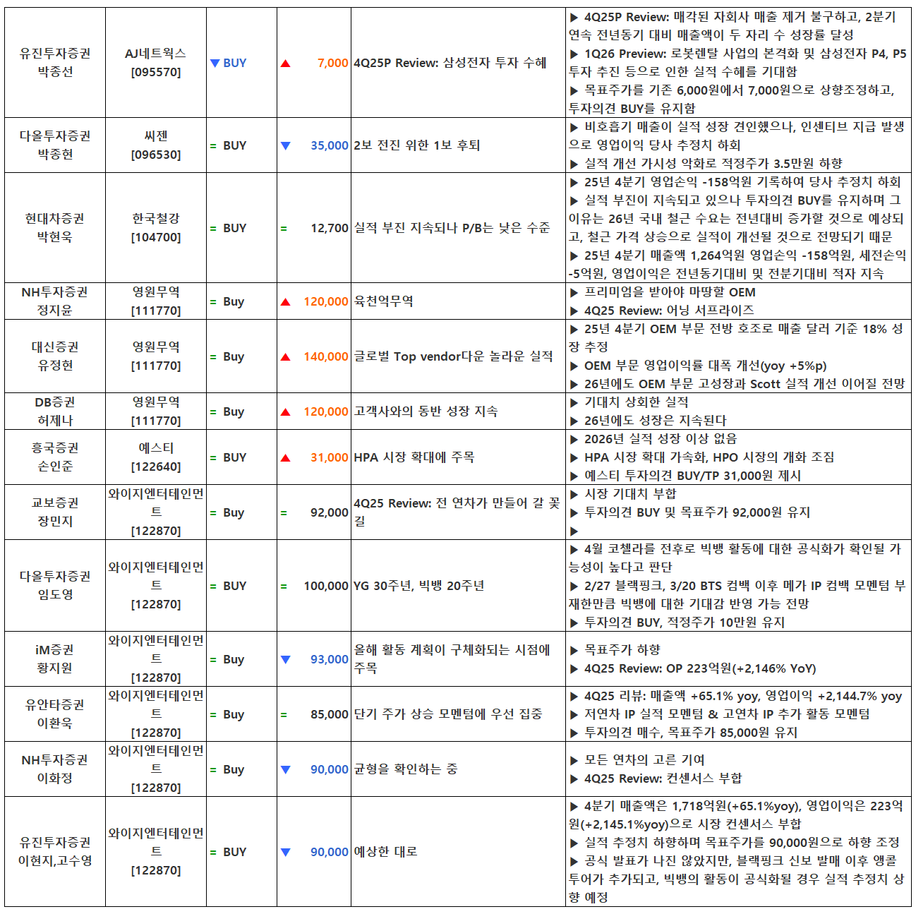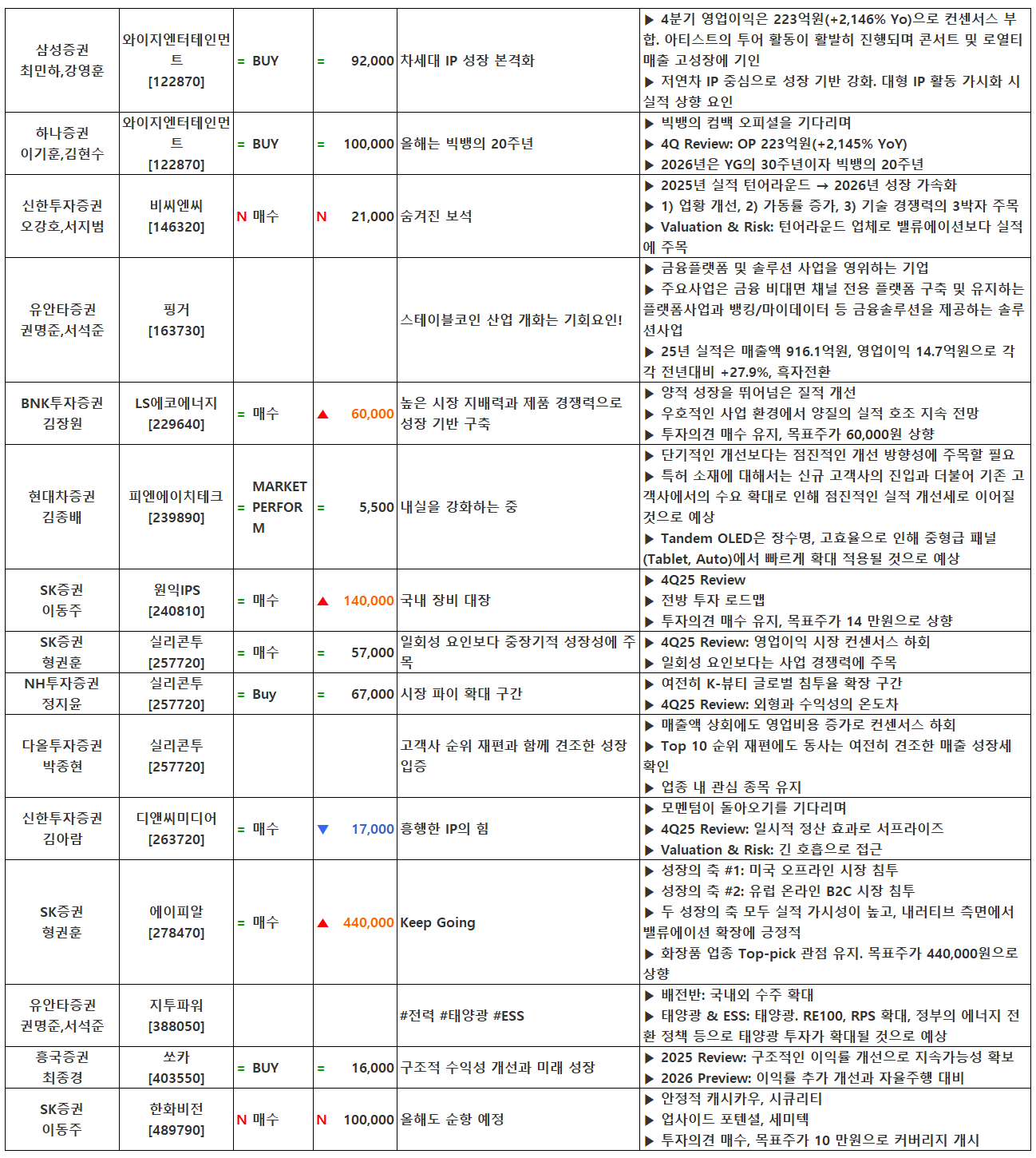 (이미지 내 글자가 잘 보이지 않으면 웹브라우저, 휴대폰 화면을 ‘가로화면’으로 보시거나, 이미지를 클릭하면 확대해서 보실 수 있습니다.) 글 내비게이션 2025년 4분기 실적 특징주(2월 26일 발표)