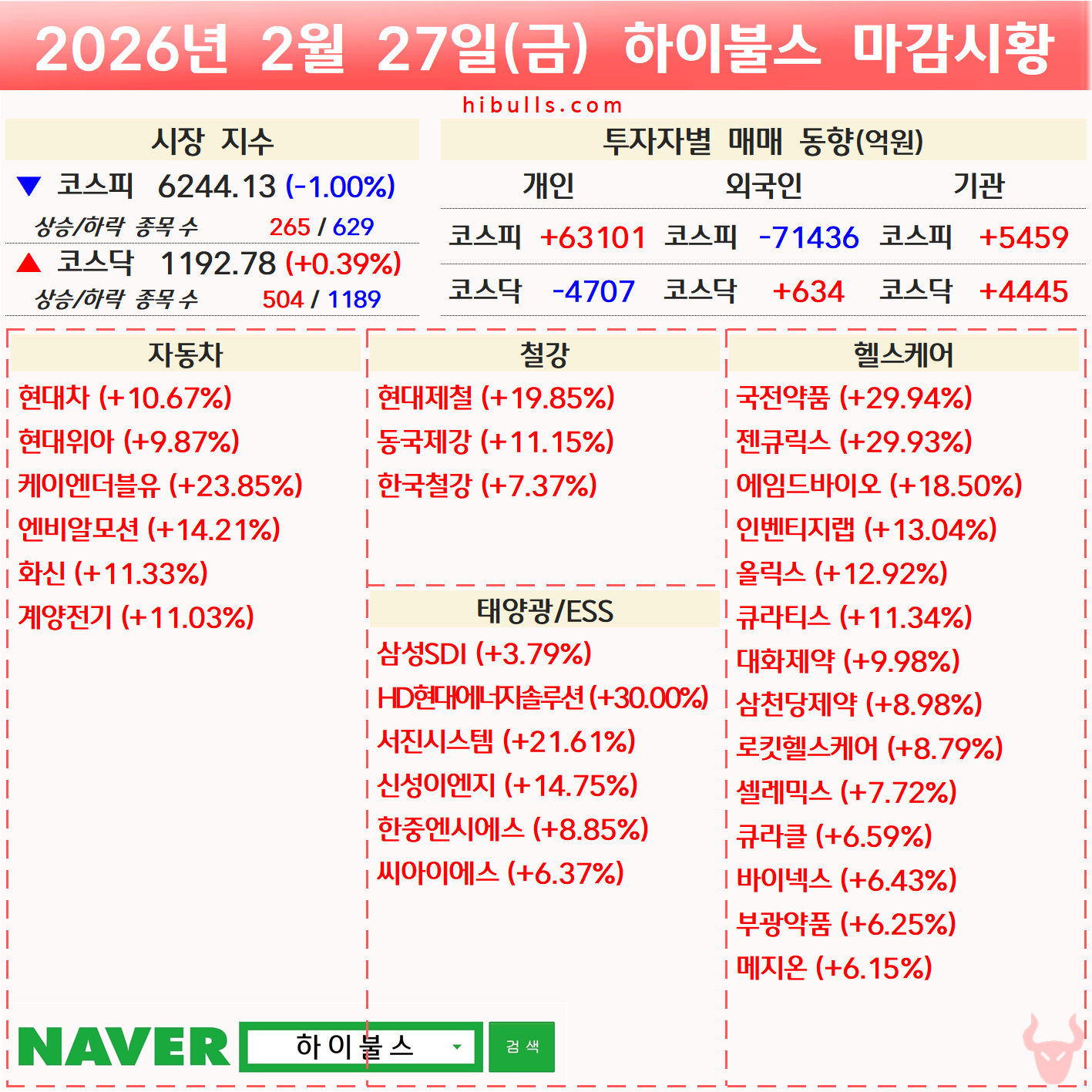 [02.27] 증시 마감시황 및 오늘의 특징주