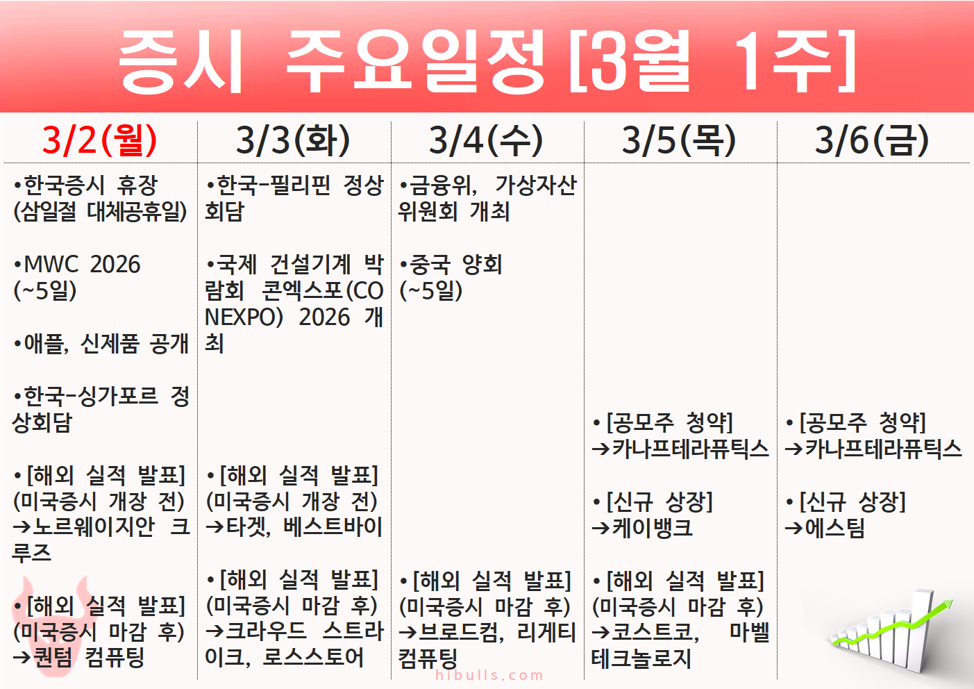 2026년 3월 1주(03.02~03.06) 주간 증시 주요 일정