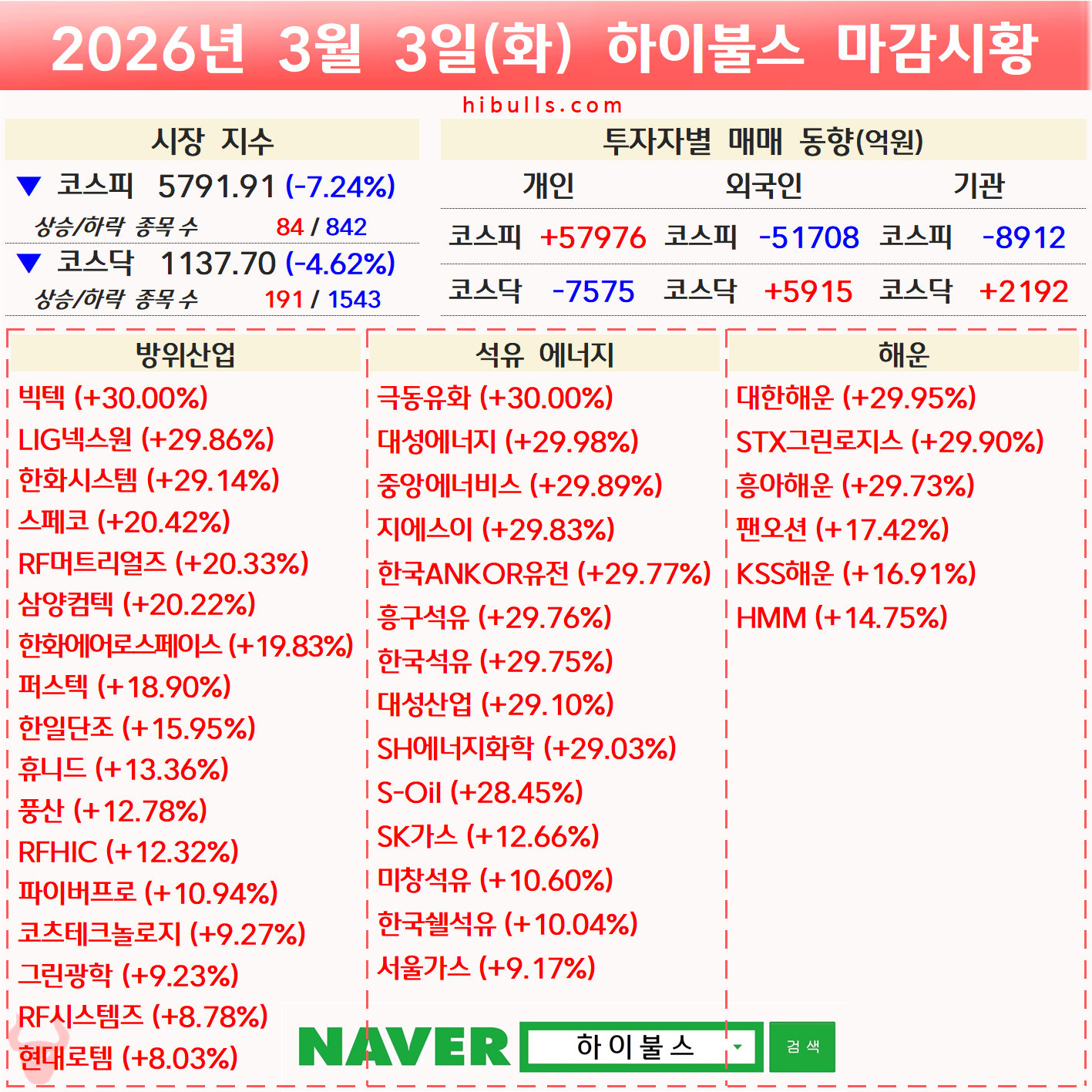 [03.03] 외국인/기관 순매수 상위 종목