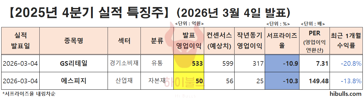 2025년 4분기 실적 특징주(3월 4일 발표)