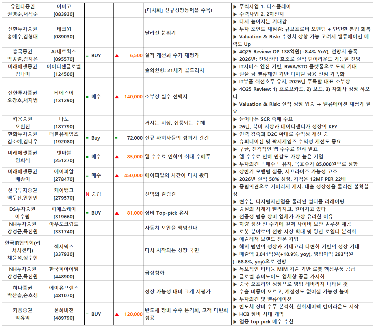(이미지 내 글자가 잘 보이지 않으면 웹브라우저, 휴대폰 화면을 ‘가로화면’으로 보시거나, 이미지를 클릭하면 확대해서 보실 수 있습니다.) 글 내비게이션 2025년 4분기 실적 특징주(3월 5일 발표)