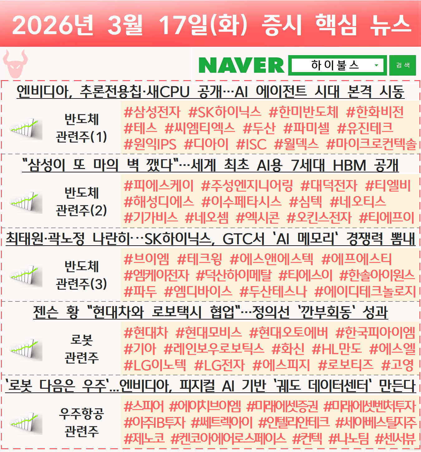 반도체 관련주, 로봇 관련주, 휴머노이드 관련주, 피지컬 AI 관련주, 우주 관련주, 우주항공 관련주