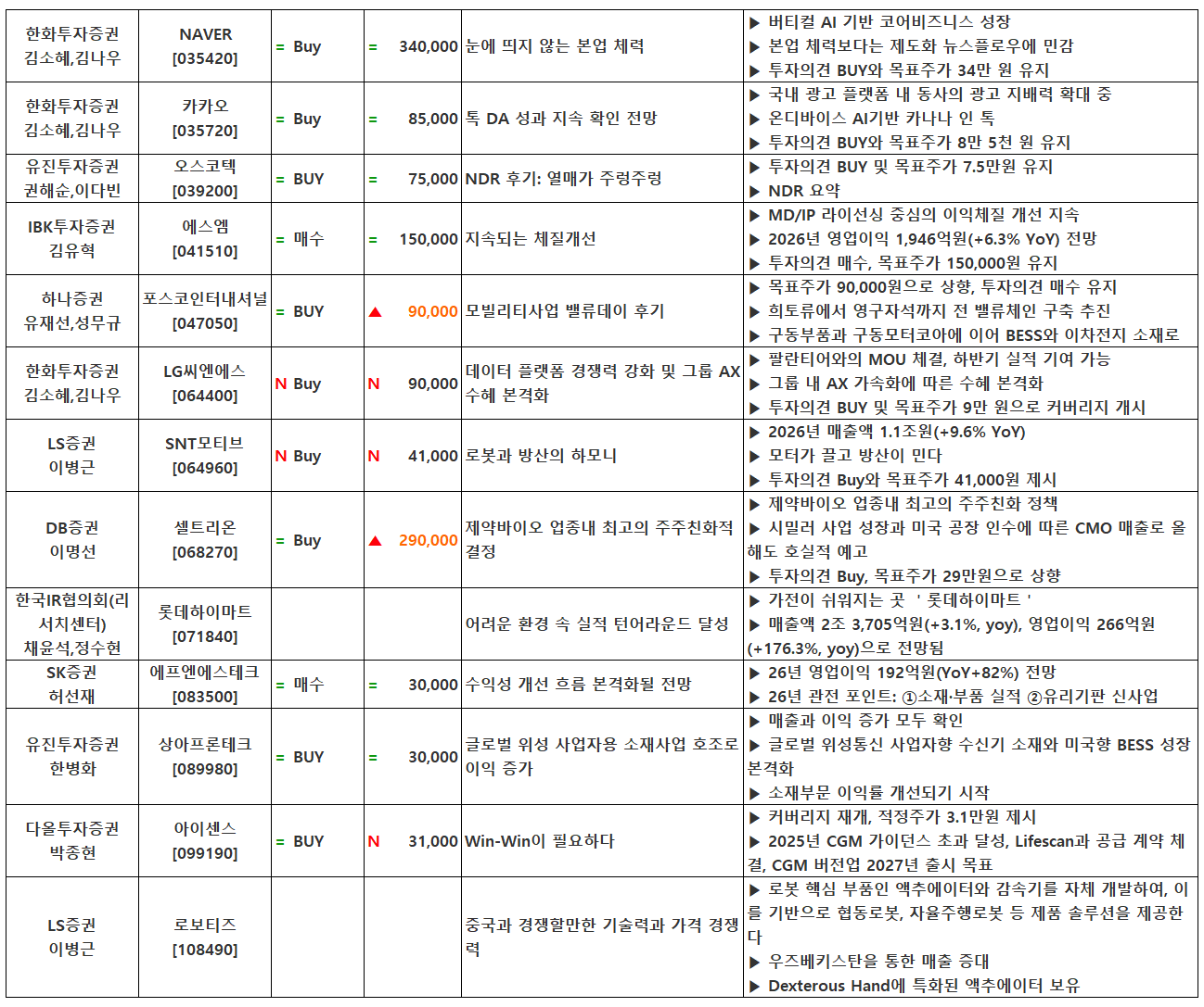 (이미지 내 글자가 잘 보이지 않으면 웹브라우저, 휴대폰 화면을 ‘가로화면’으로 보시거나, 이미지를 클릭하면 확대해서 보실 수 있습니다.) 글 내비게이션 2025년 4분기 실적 특징주(3월 16일 발표)