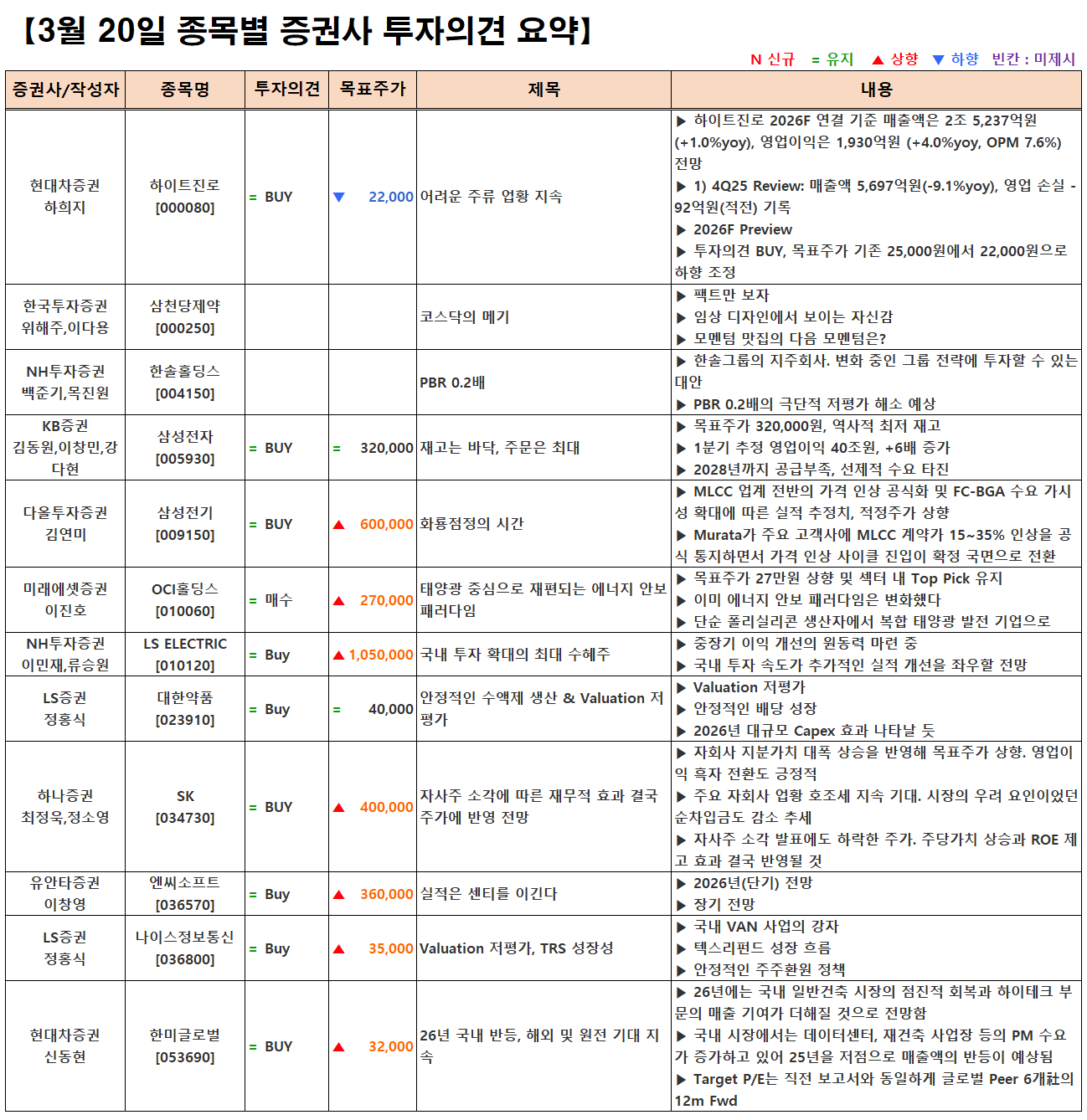 (이미지 내 글자가 잘 보이지 않으면 웹브라우저, 휴대폰 화면을 ‘가로화면’으로 보시거나, 이미지를 클릭하면 확대해서 보실 수 있습니다.) 글 내비게이션 [03.20] 증시 개장 전 시황&오늘의 대응 전략