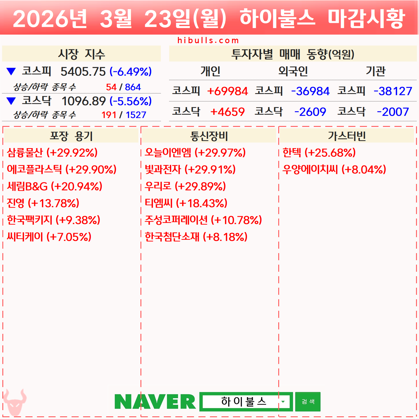 [03.23] 증시 마감시황 및 오늘의 특징주
