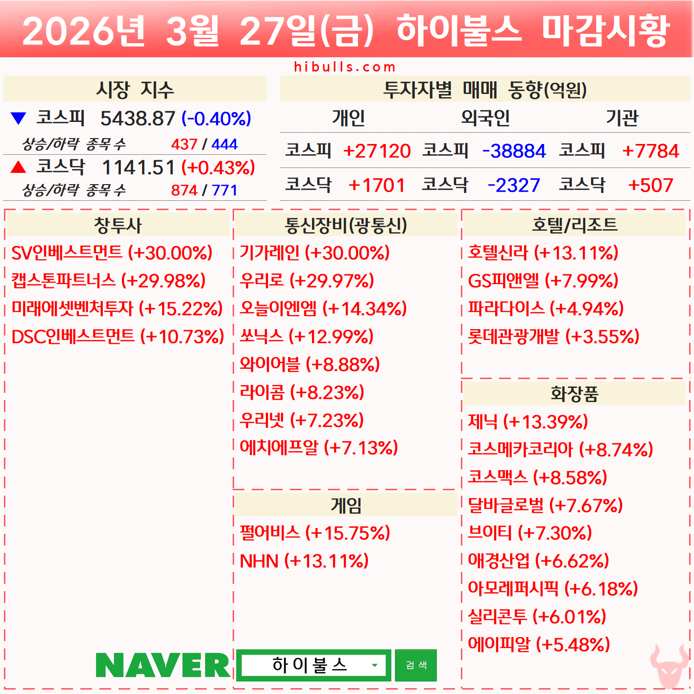 [03.27] 증시 마감시황 및 오늘의 특징주