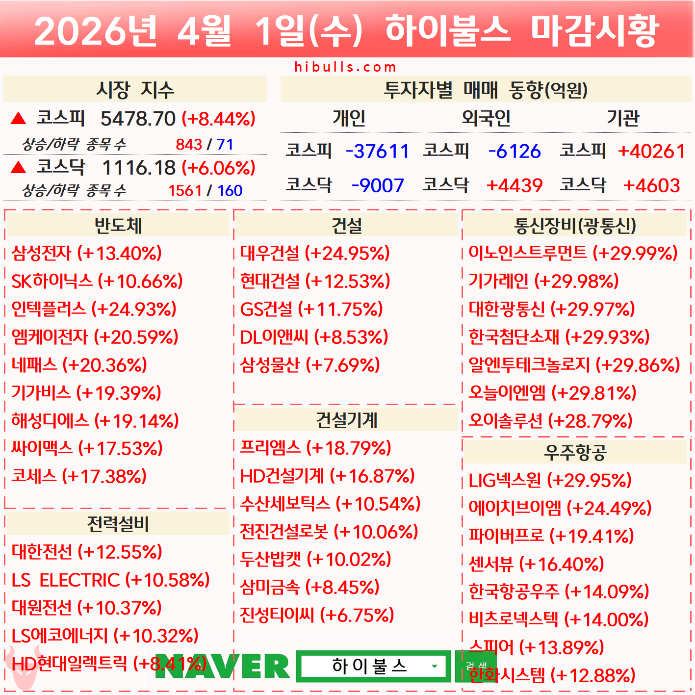 [04.01] 증시 마감시황 및 오늘의 특징주