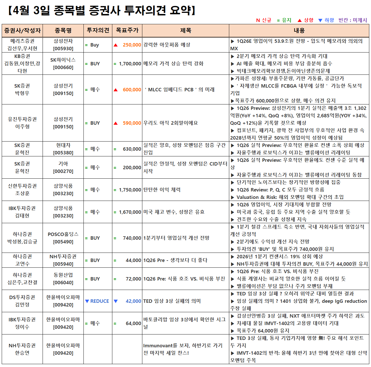 (이미지 내 글자가 잘 보이지 않으면 웹브라우저, 휴대폰 화면을 ‘가로화면’으로 보시거나, 이미지를 클릭하면 확대해서 보실 수 있습니다.) 글 내비게이션 [04.03] 증시 개장 전 시황&오늘의 대응 전략