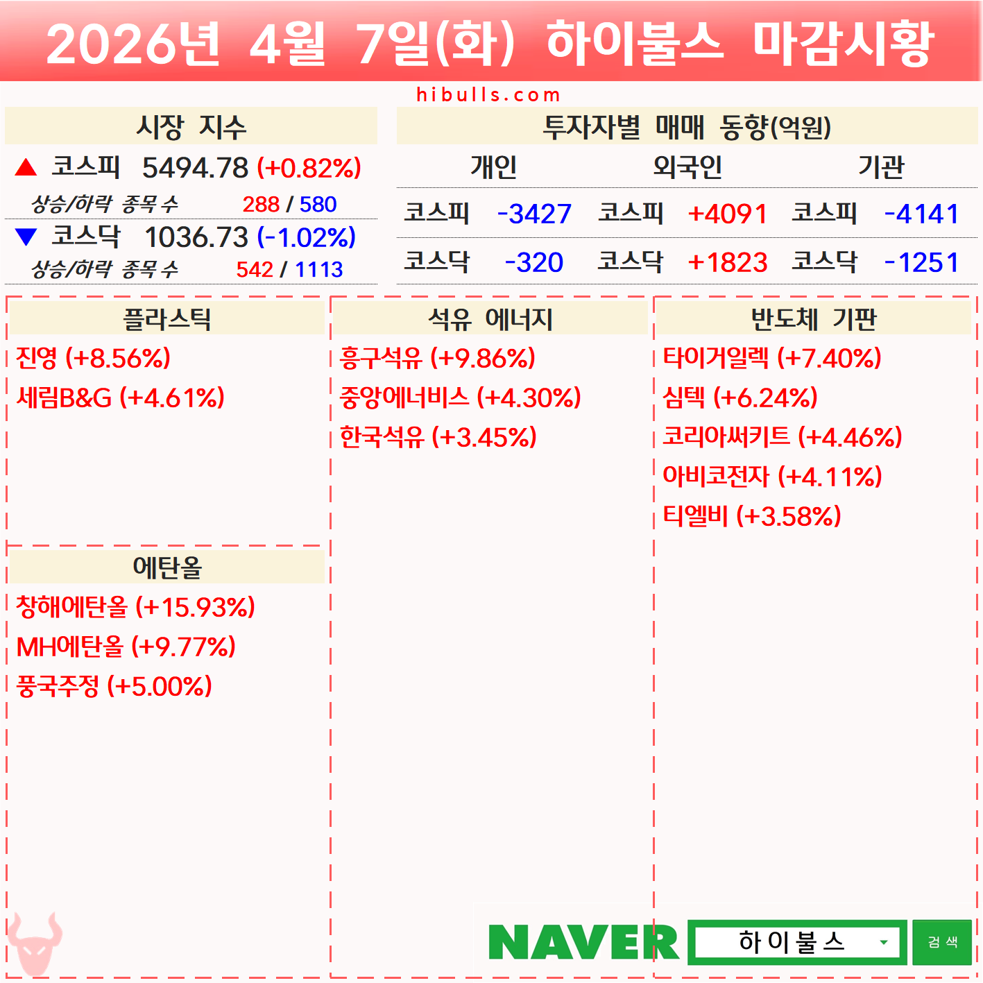 [04.07] 증시 마감시황 및 오늘의 특징주