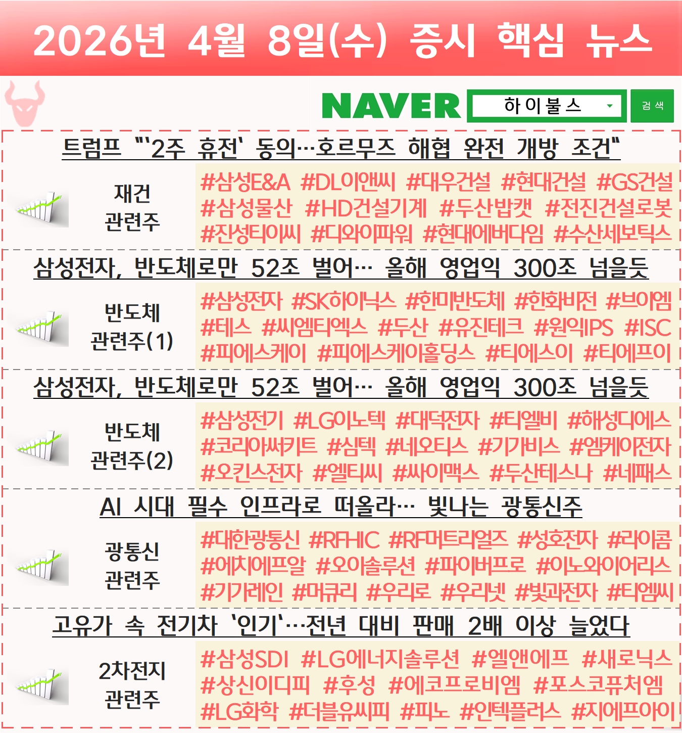 재건 관련주, 건설 관련주, 건설기계 관련주, 건설장비 관련주, 반도체 관련주, 광통신 관련주, 2차전지 관련주 글 내비게이션 [04.07] 증시 개장 전 핵심뉴스 하이불스 Pick