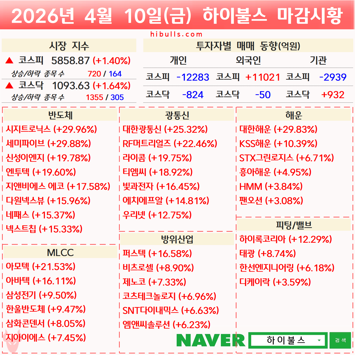 [04.10] 증시 마감시황 및 오늘의 특징주