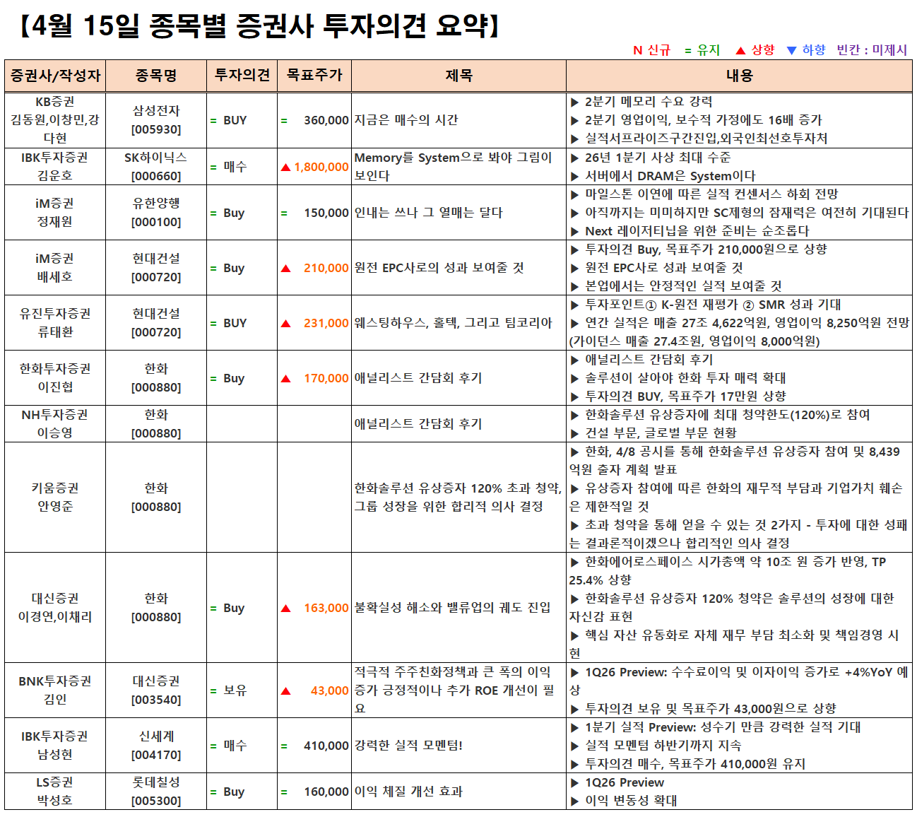 (이미지 내 글자가 잘 보이지 않으면 웹브라우저, 휴대폰 화면을 ‘가로화면’으로 보시거나, 이미지를 클릭하면 확대해서 보실 수 있습니다.) 글 내비게이션 [04.15] 증시 개장 전 시황&오늘의 대응 전략
