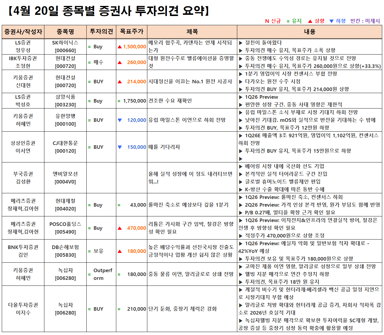 (이미지 내 글자가 잘 보이지 않으면 웹브라우저, 휴대폰 화면을 ‘가로화면’으로 보시거나, 이미지를 클릭하면 확대해서 보실 수 있습니다.) 글 내비게이션 [04.20] 증시 개장 전 시황&오늘의 대응 전략