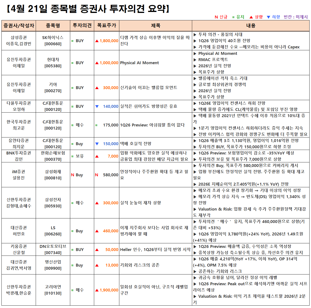(이미지 내 글자가 잘 보이지 않으면 웹브라우저, 휴대폰 화면을 ‘가로화면’으로 보시거나, 이미지를 클릭하면 확대해서 보실 수 있습니다.) 글 내비게이션 [04.21] 증시 개장 전 시황&오늘의 대응 전략