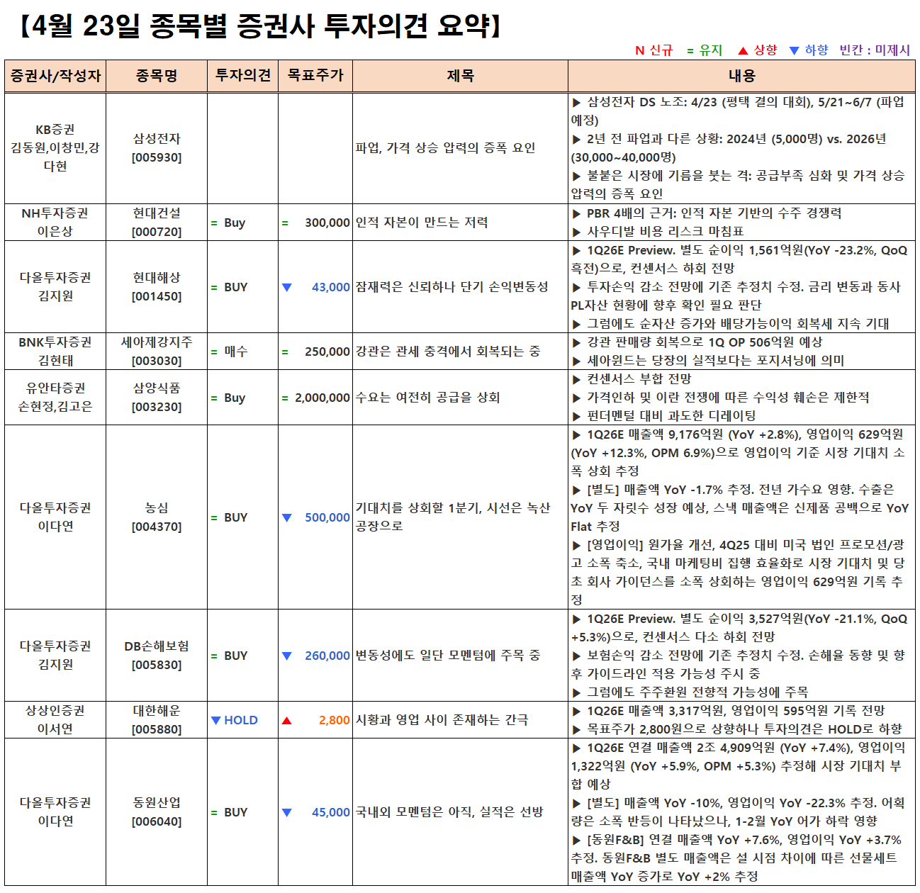 (이미지 내 글자가 잘 보이지 않으면 웹브라우저, 휴대폰 화면을 ‘가로화면’으로 보시거나, 이미지를 클릭하면 확대해서 보실 수 있습니다.) 글 내비게이션 [04.23] 증시 개장 전 시황&오늘의 대응 전략