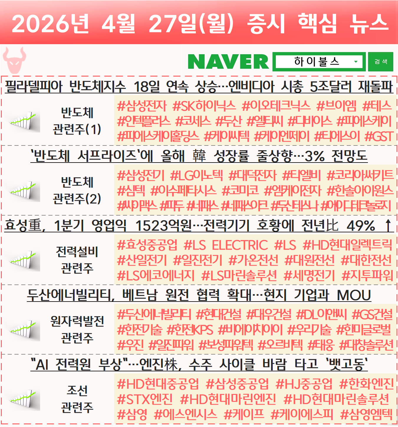 반도체 관련주, 전력망 관련주, 전력설비 관련주, 전력기기 관련주, 변압기 관련주, 전력인프라 관련주, 전력 인프라 관련주, 원전 관련주, 원자력발전 관련주, 원자력에너지 관련주, 원자력 에너지 관련주, 조선 관련주, 조선엔진 관련주, 선박엔진 관련주, 선박 엔진 관련주